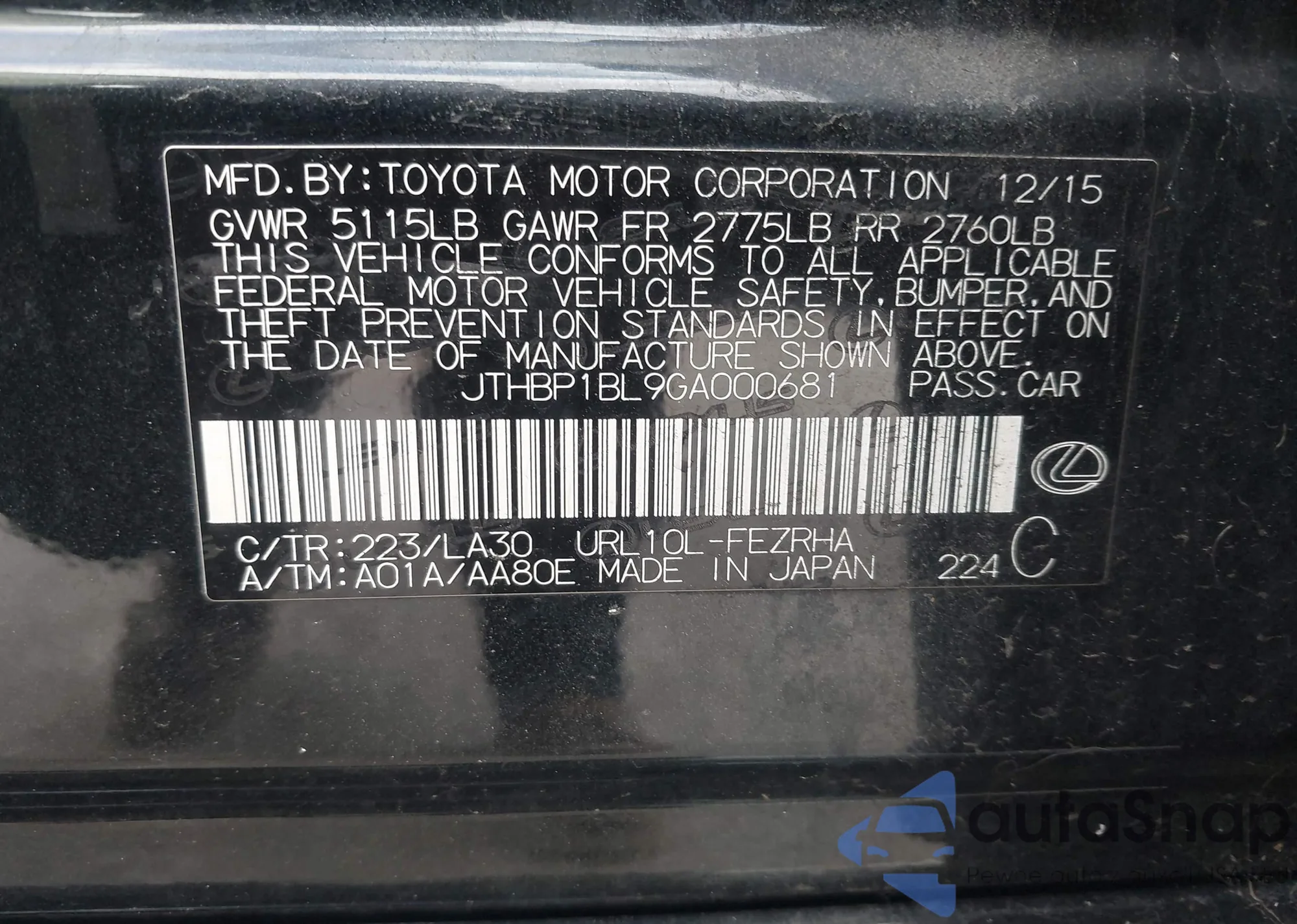 VIN: JTHBP1BL9GA000681