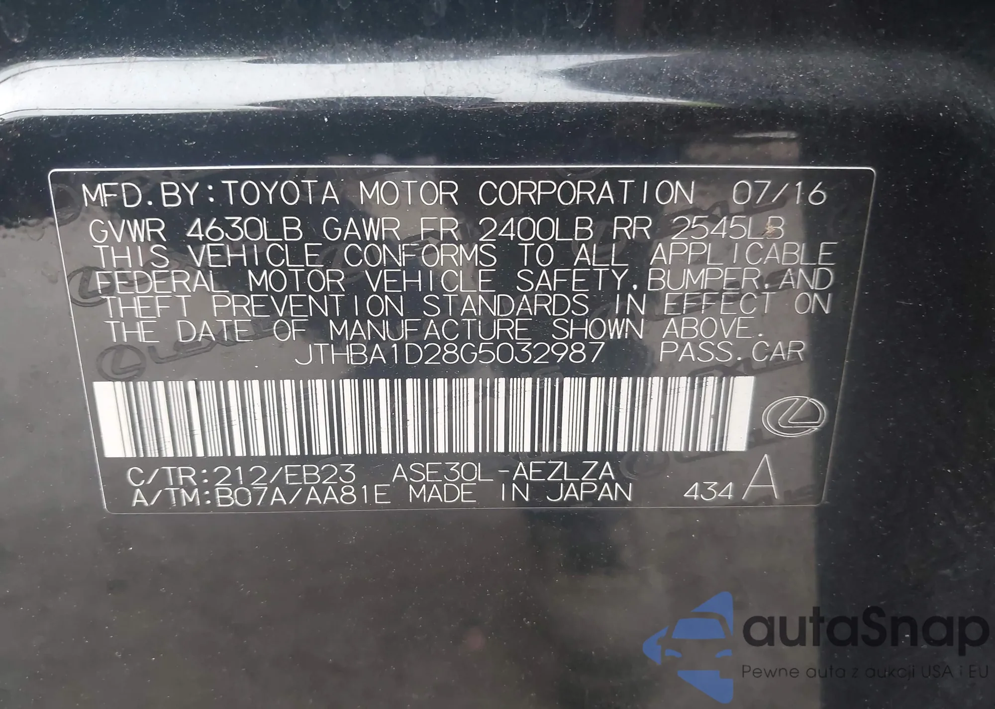 JTHBA1D28G5032987 IAAI