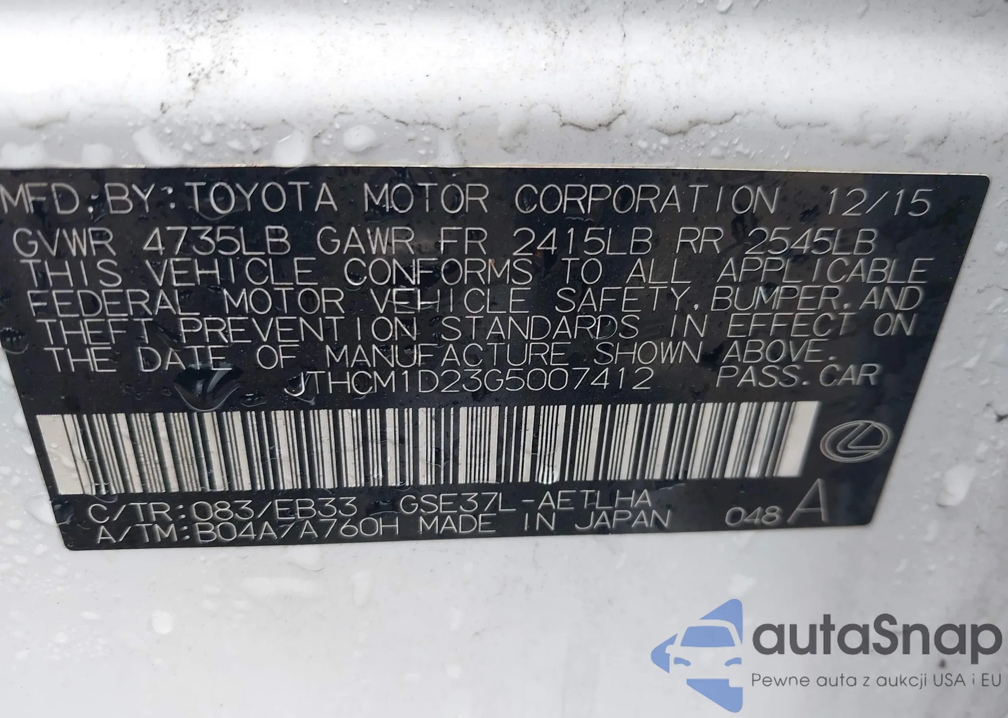 VIN: JTHCM1D23G5007412