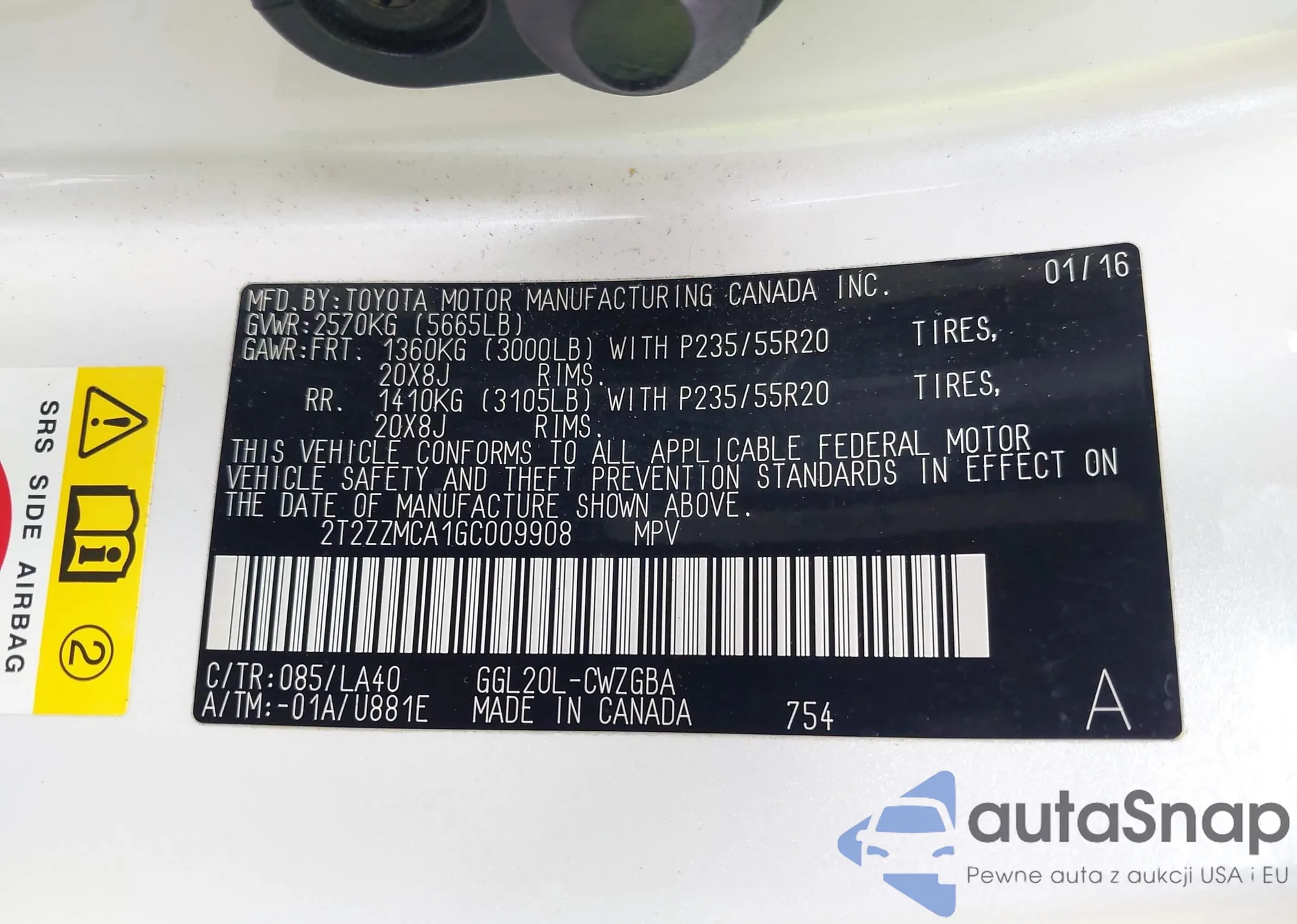 VIN: 2T2ZZMCA1GC009908