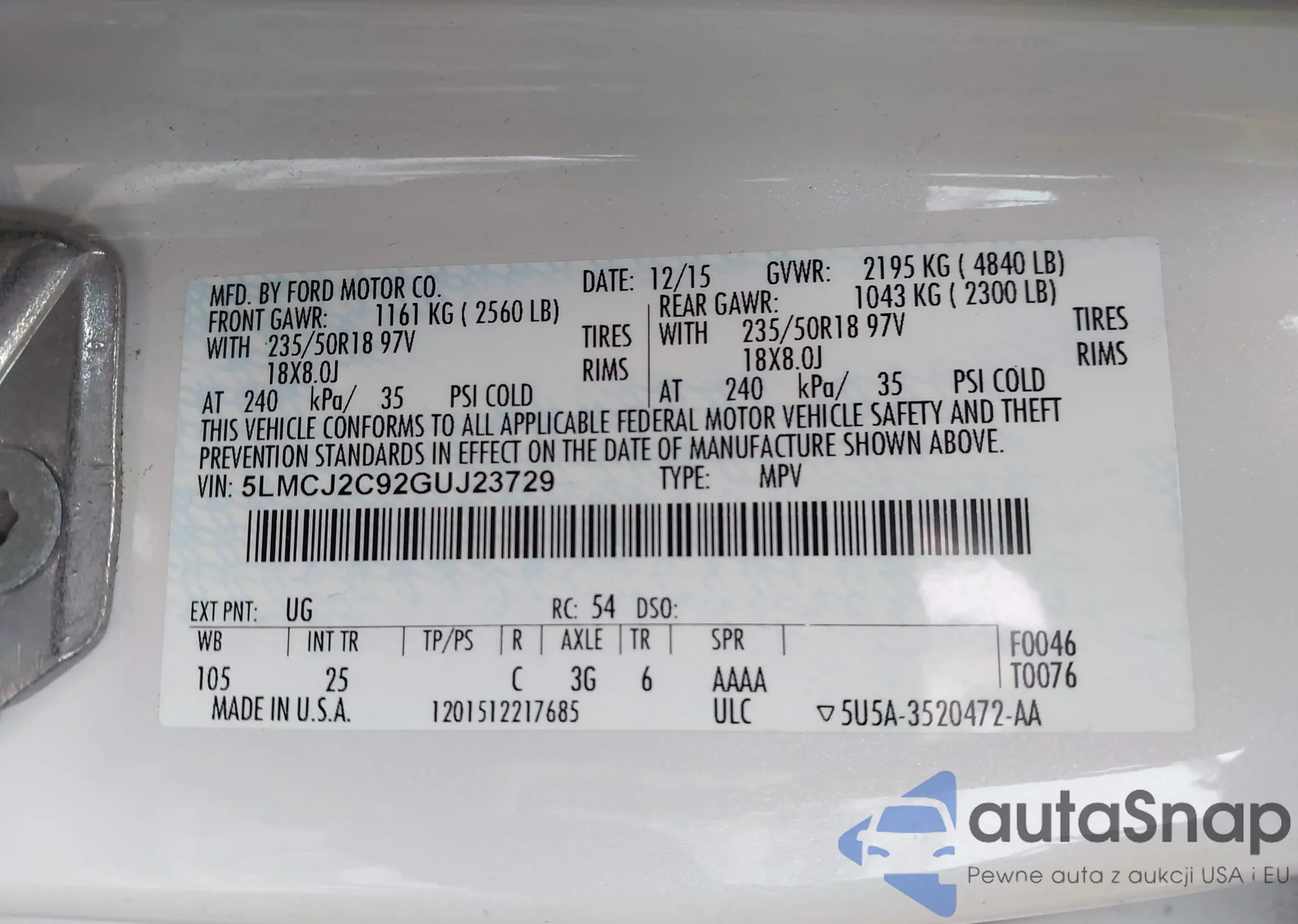 • VIN: 5LMCJ2C92GUJ23729