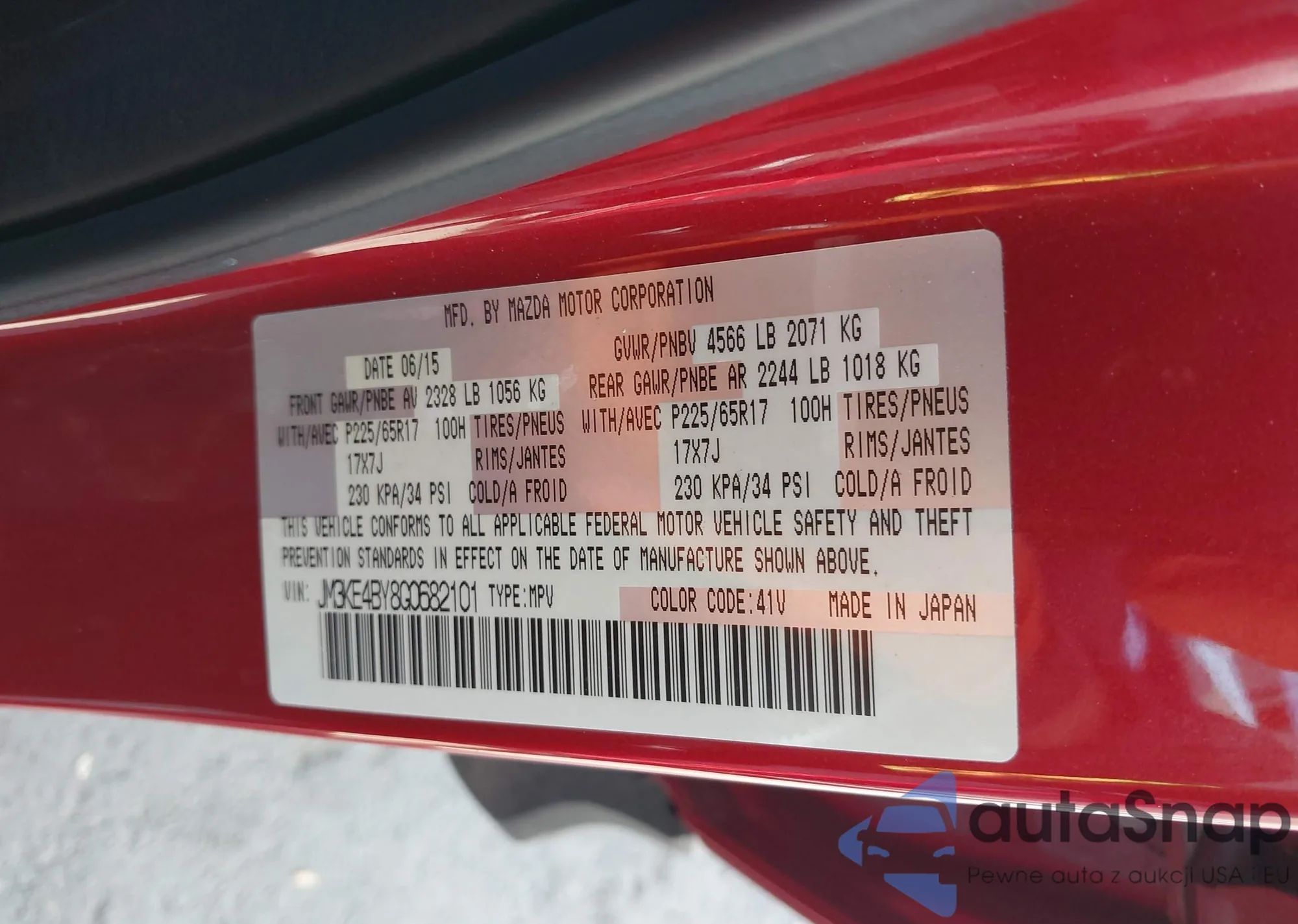 Samochód Mazda CX-5 2016 (VIN JM3KE4BY8G0682101) nie był wcześniej licytowany. Dokumenty są czyste, przebieg odpowiada lub jest niższy niż średnia rynku. Sprzedaje go firma ubezpieczeniowa – polecamy zakup. Dostawa do portu zajmie ok. 6–8 tygodni.