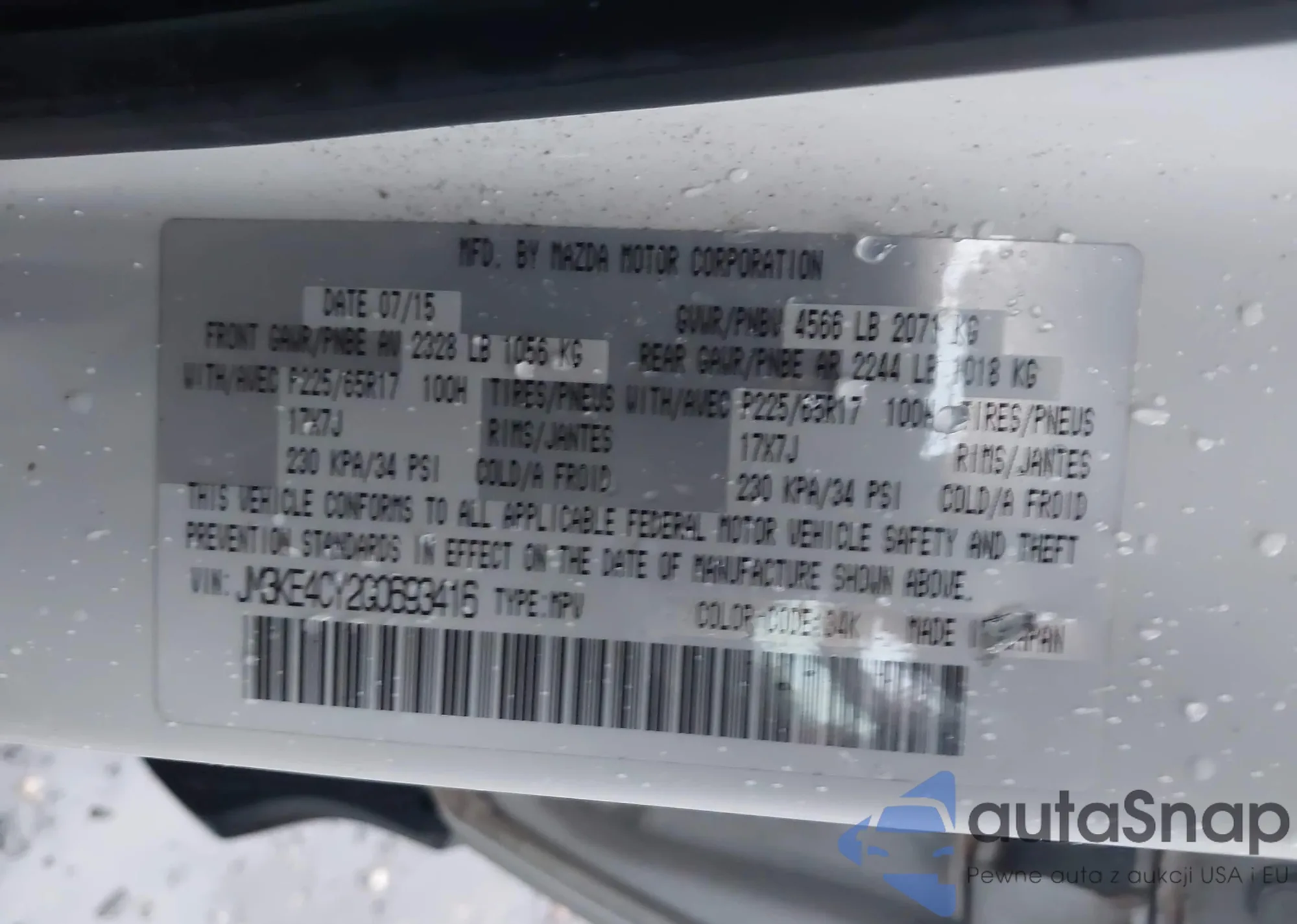 Samochód Mazda CX-5 2016 (VIN JM3KE4CY2G0693416) nie był wcześniej licytowany. Dokumenty są czyste, przebieg odpowiada lub jest niższy niż średnia rynku. Sprzedaje go firma ubezpieczeniowa – polecamy zakup. Dostawa do portu zajmie ok. 6–8 tygodni.