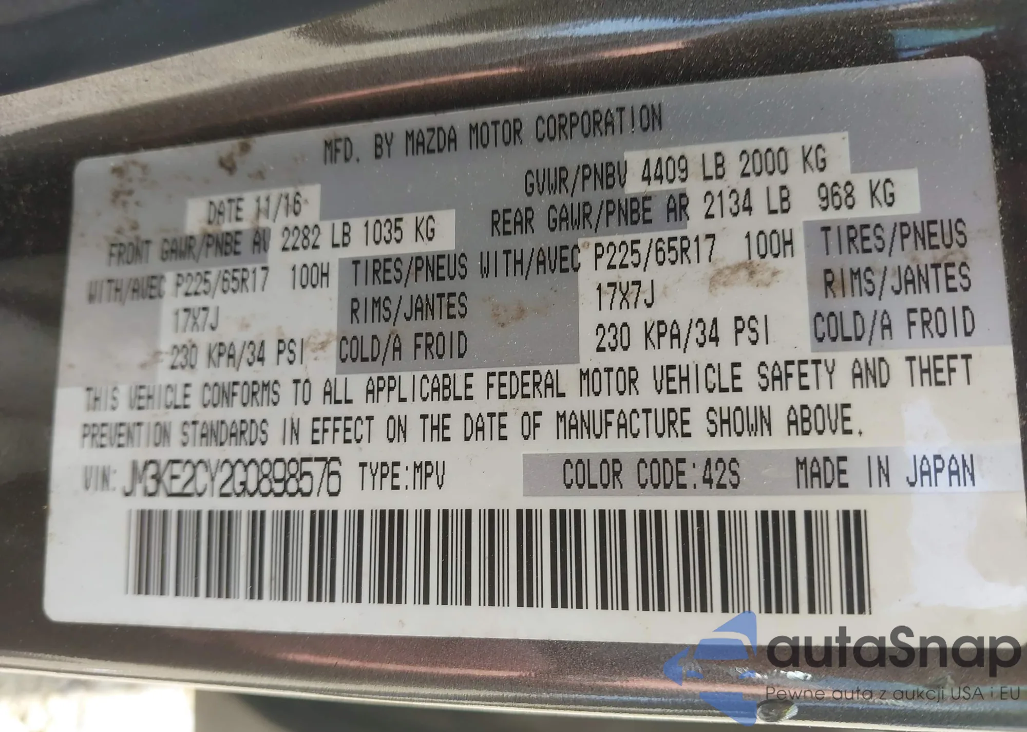 VIN: JM3KE2CY2G0898576