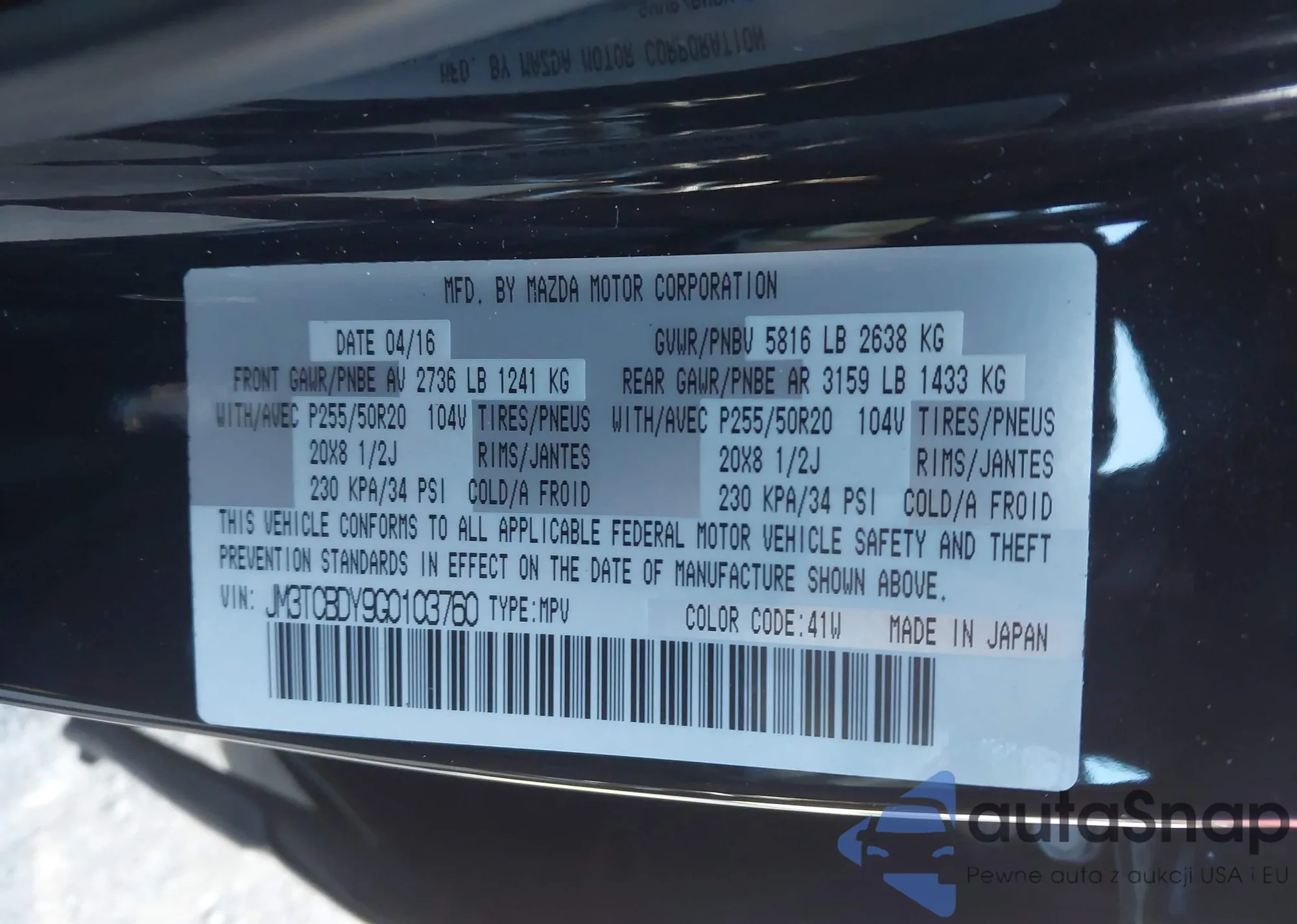 • VIN: JM3TCBDY9G0103760