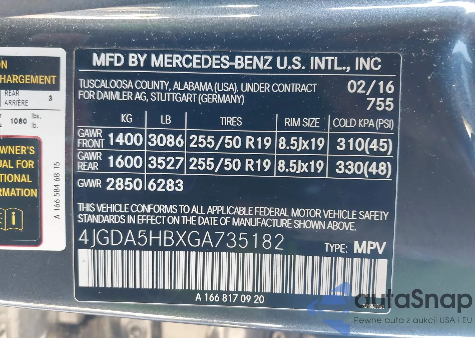 • VIN: 4JGDA5HBXGA735182