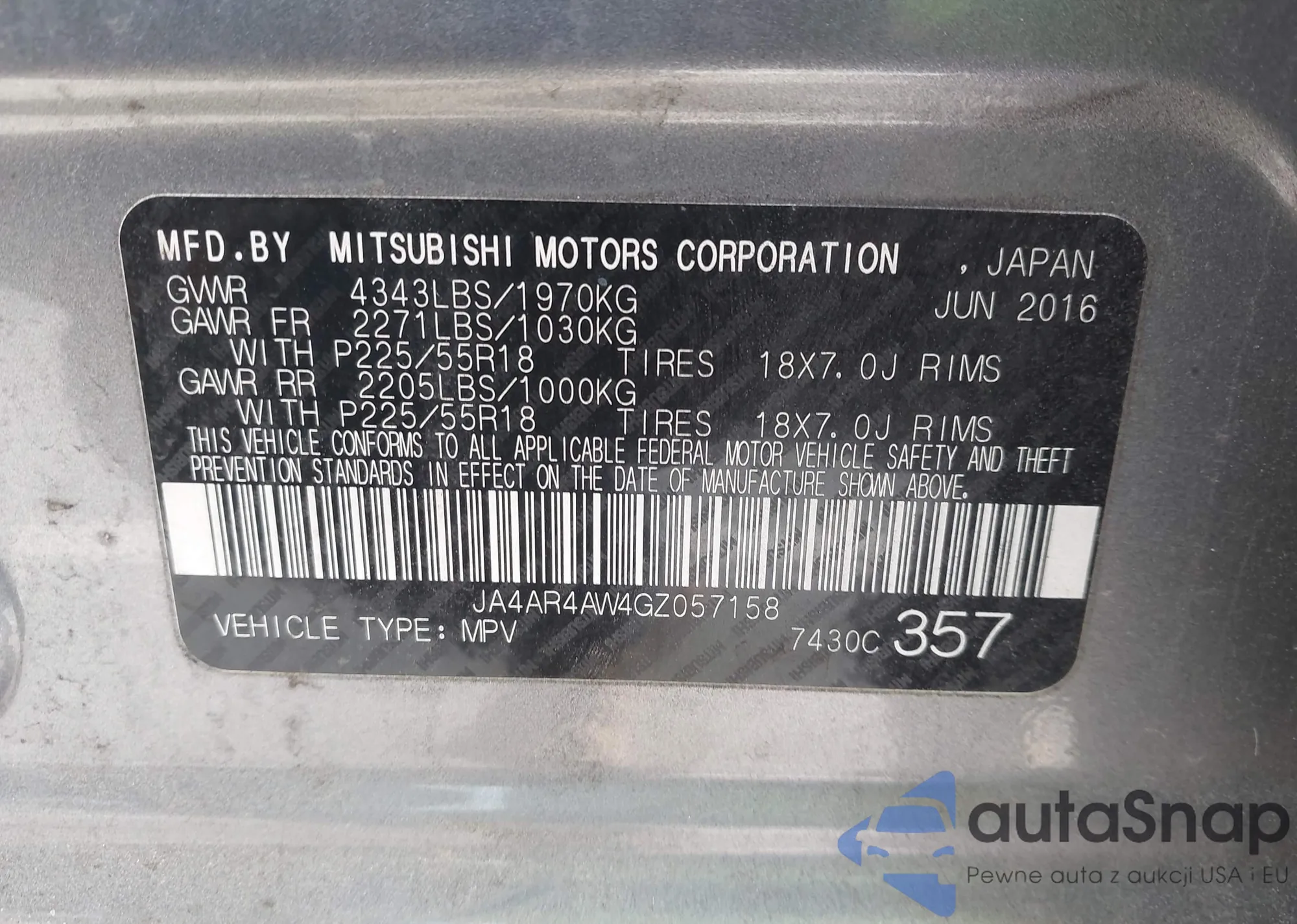 VIN: JA4AR4AW4GZ057158