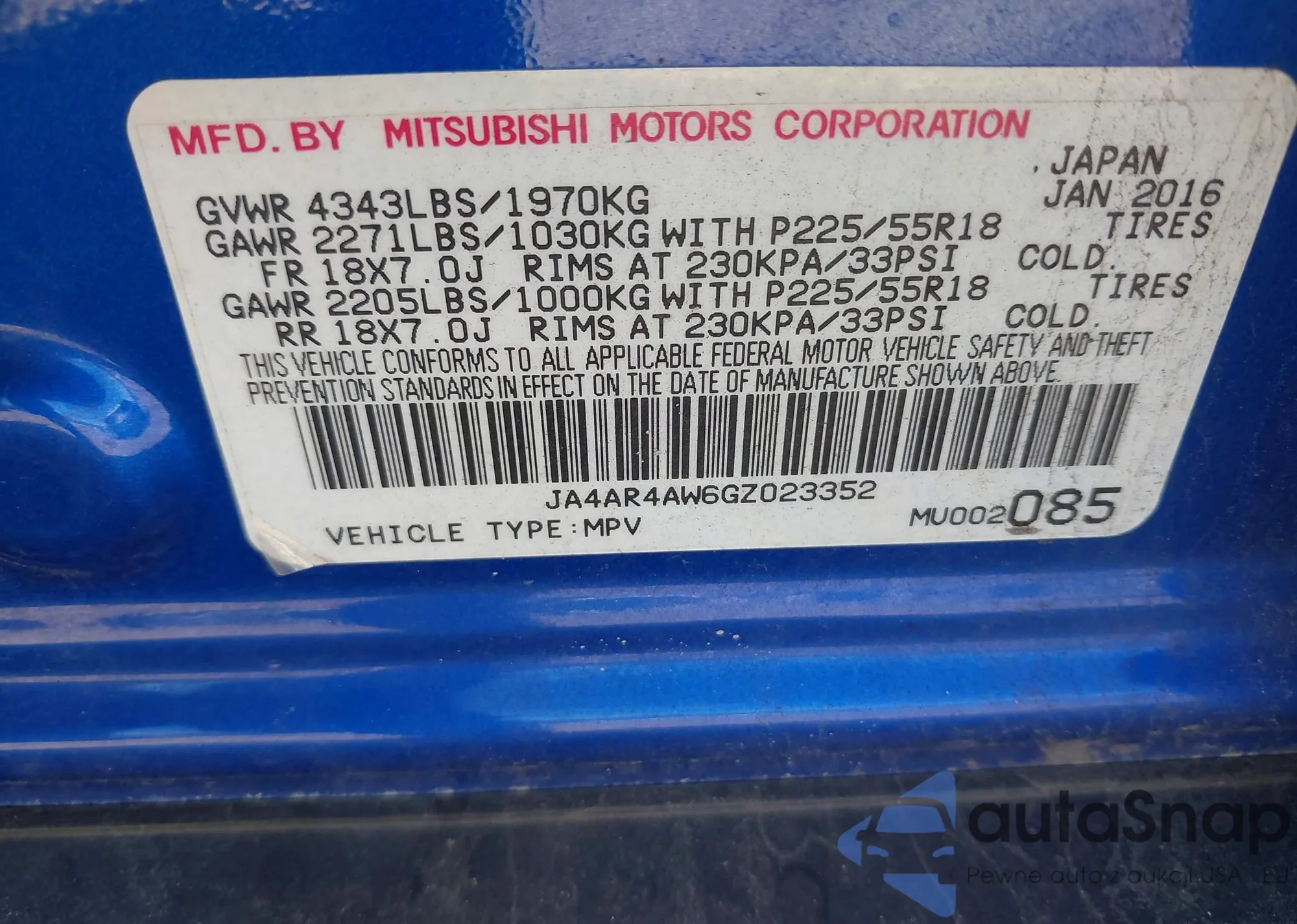 • VIN: JA4AR4AW6GZ023352