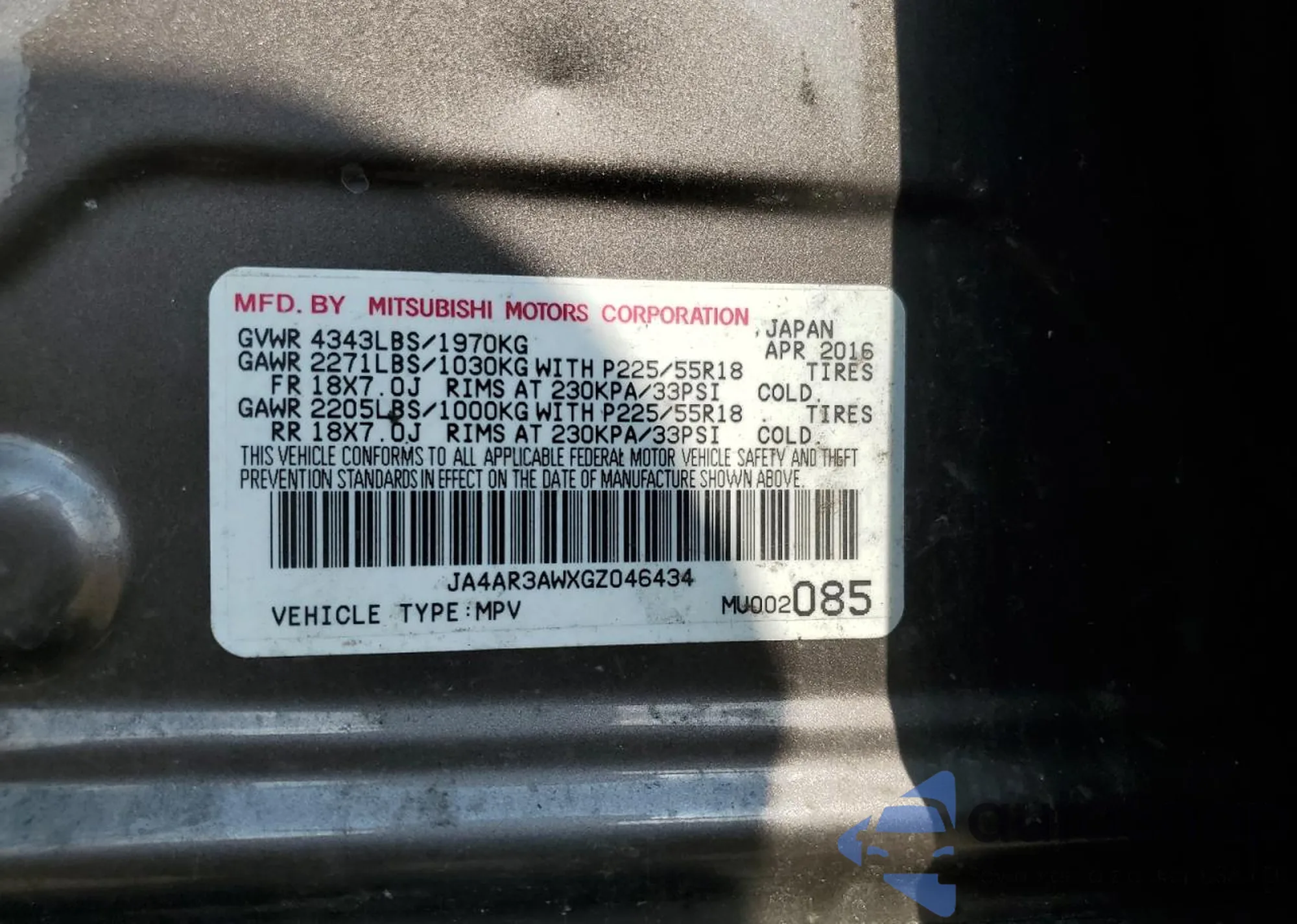 • VIN: JA4AR3AWXGZ046434