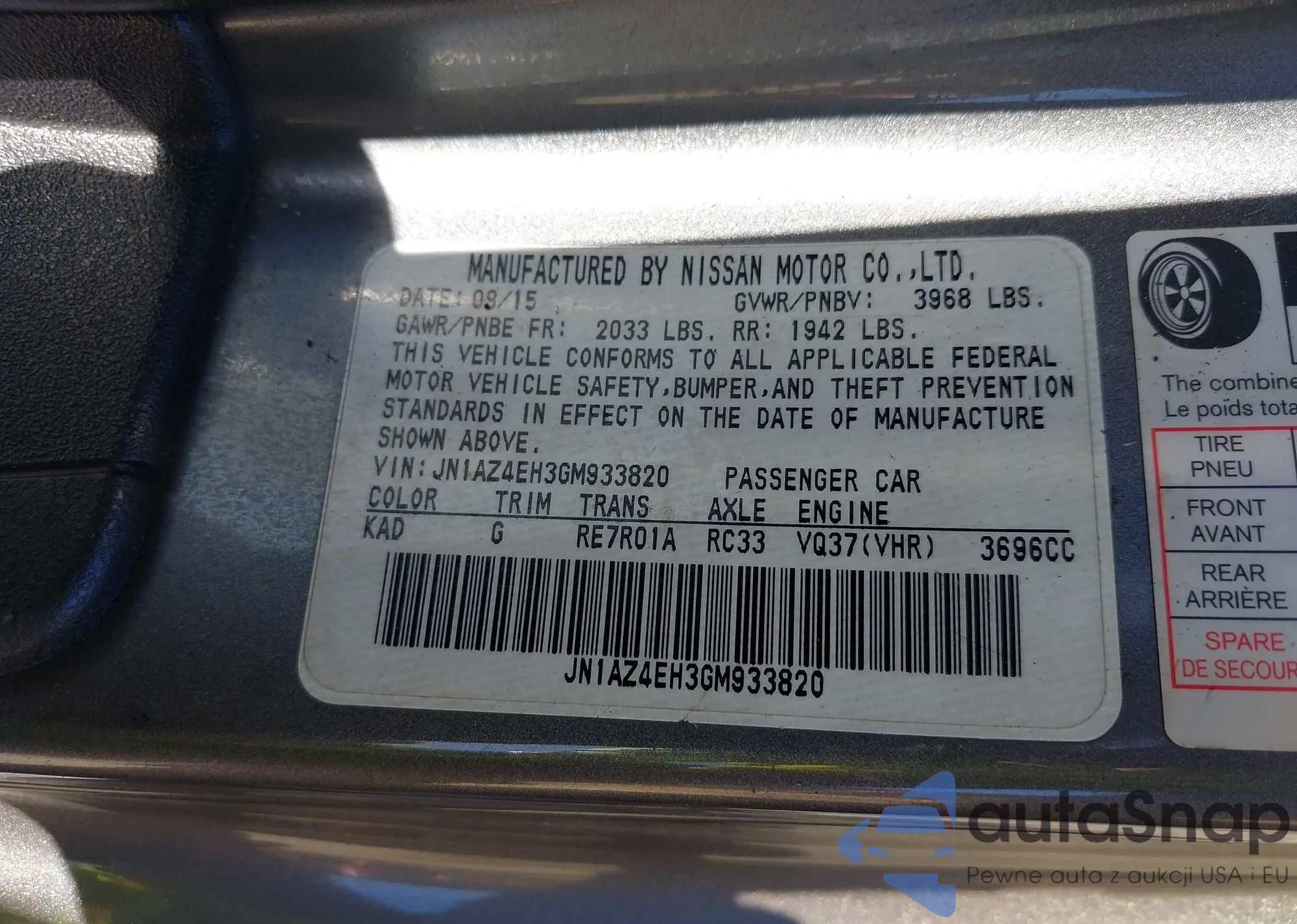 Samochód Nissan 370Z 2016 (VIN JN1AZ4EH3GM933820) był już licytowany 1 razy i/lub sprzedaje go niezweryfikowany sprzedawca. Zalecamy raport Carfax i potwierdzenie możliwości rejestracji pojazdu przed zakupem.
