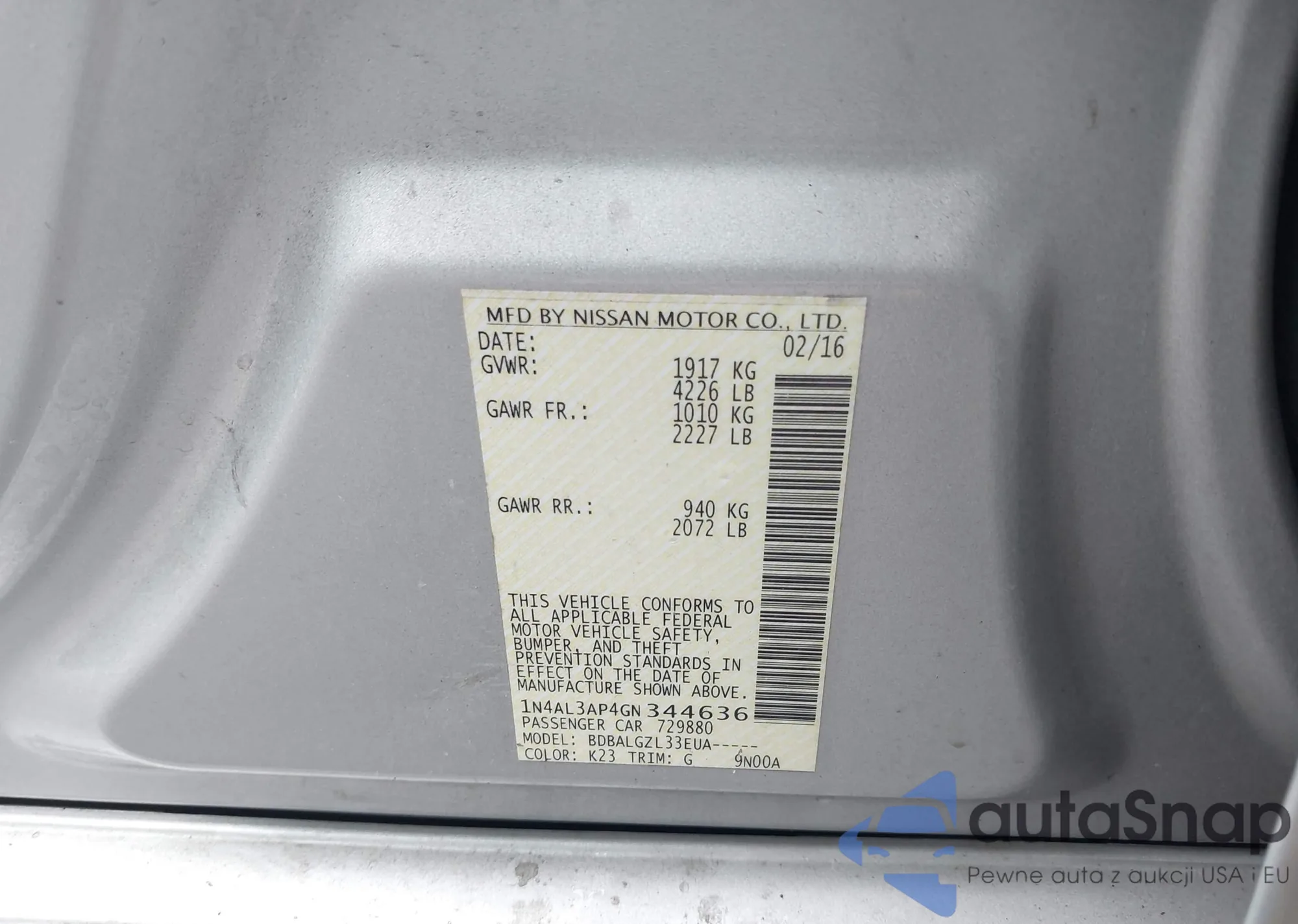 VIN: 1N4AL3AP4GN344636