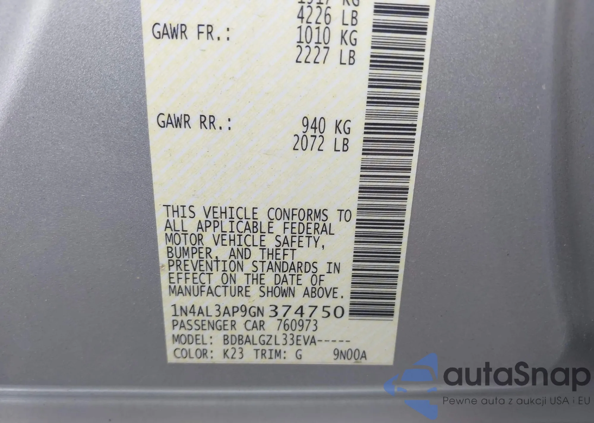 VIN: 1N4AL3AP9GN374750