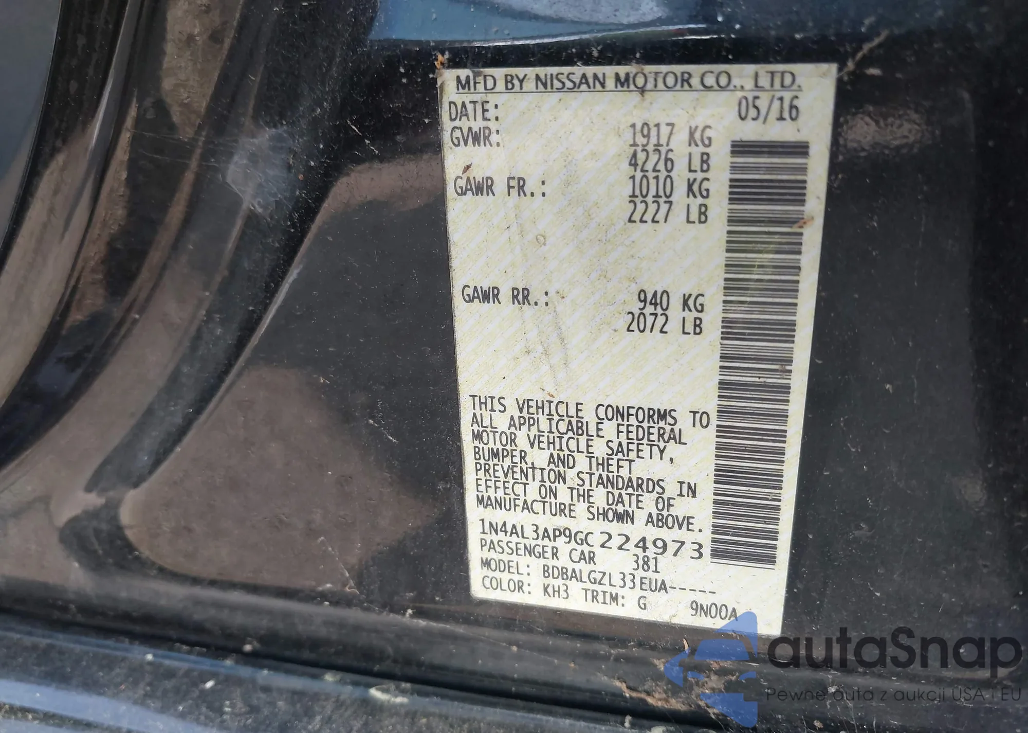VIN: 1N4AL3AP9GC224973