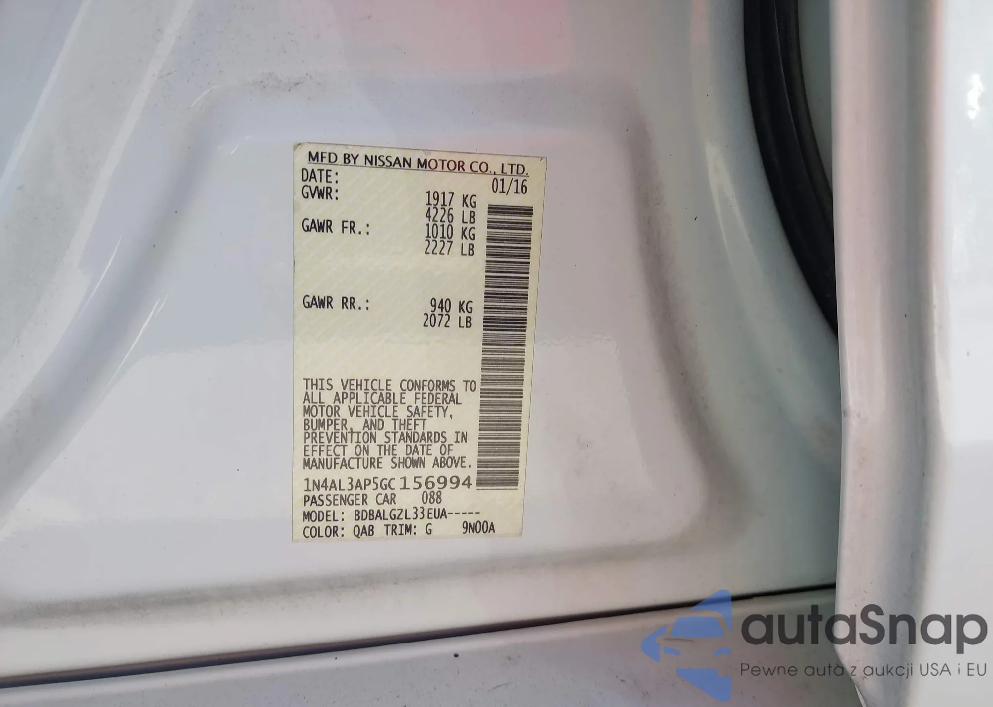 VIN: 1N4AL3AP5GC156994