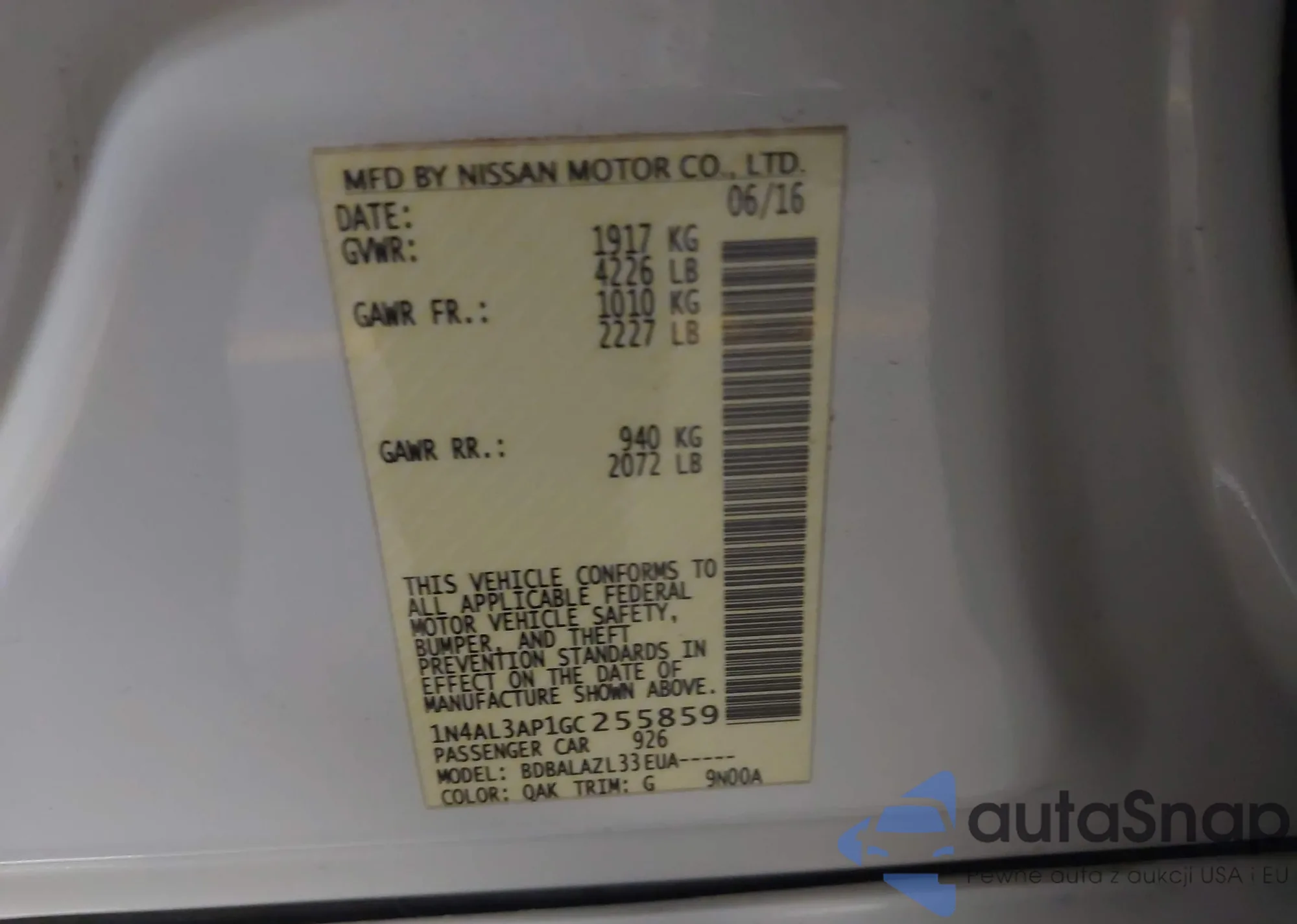 VIN: 1N4AL3AP1GC255859