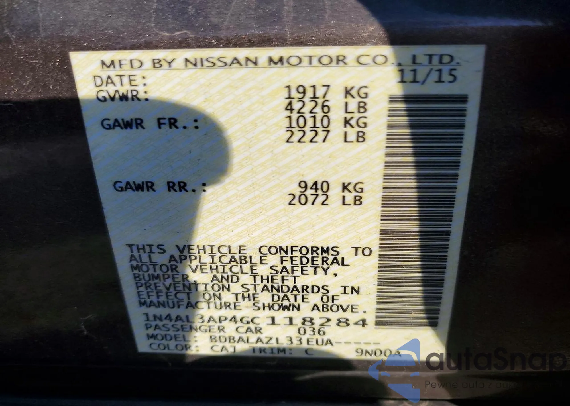 Samochód Nissan Altima 2016 (VIN 1N4AL3AP4GC118284) sprzedaje go niezweryfikowany sprzedawca. Zalecamy raport Carfax i potwierdzenie możliwości rejestracji pojazdu przed zakupem.