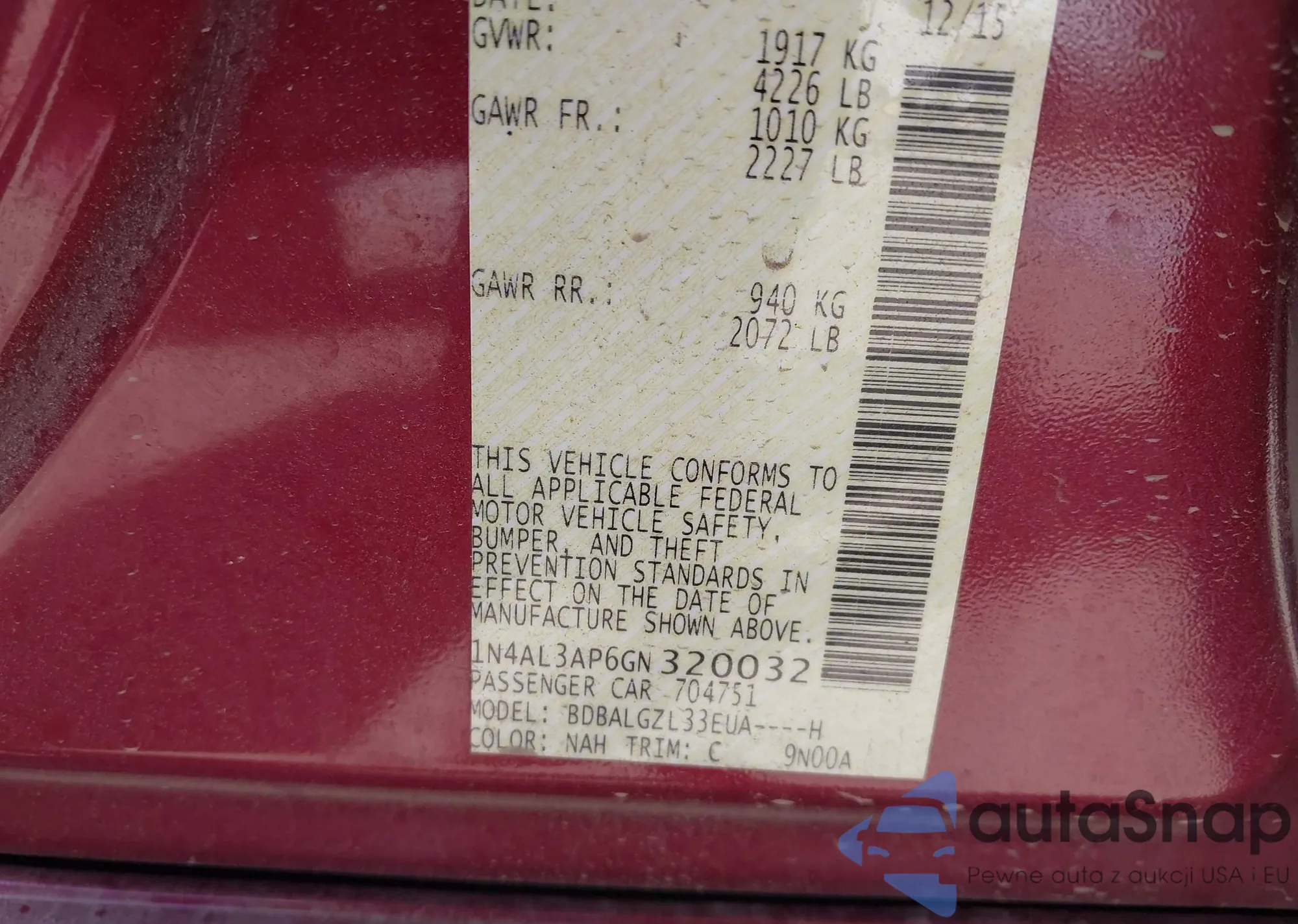 VIN: 1N4AL3AP6GN320032
