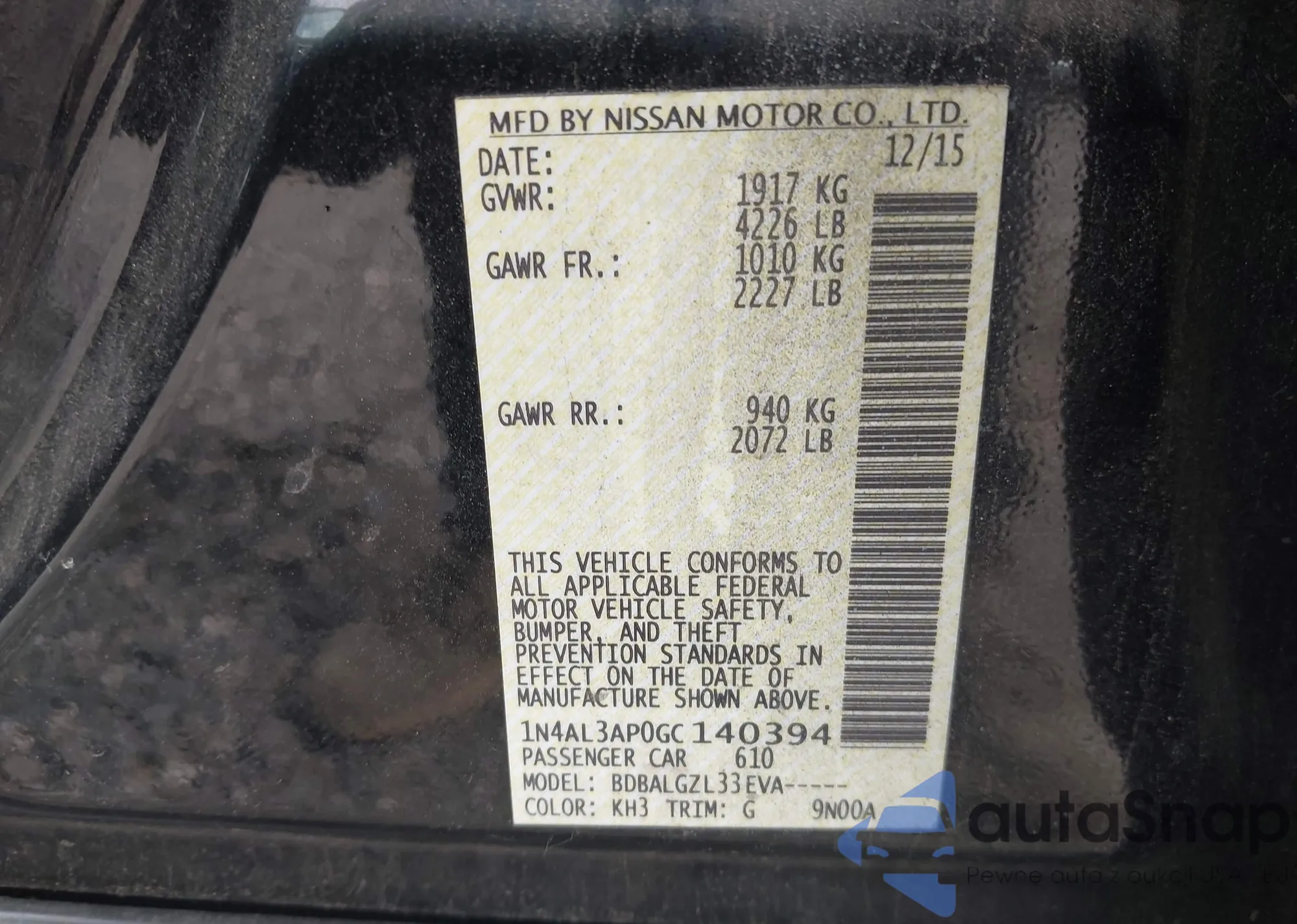 • VIN: 1N4AL3AP0GC140394