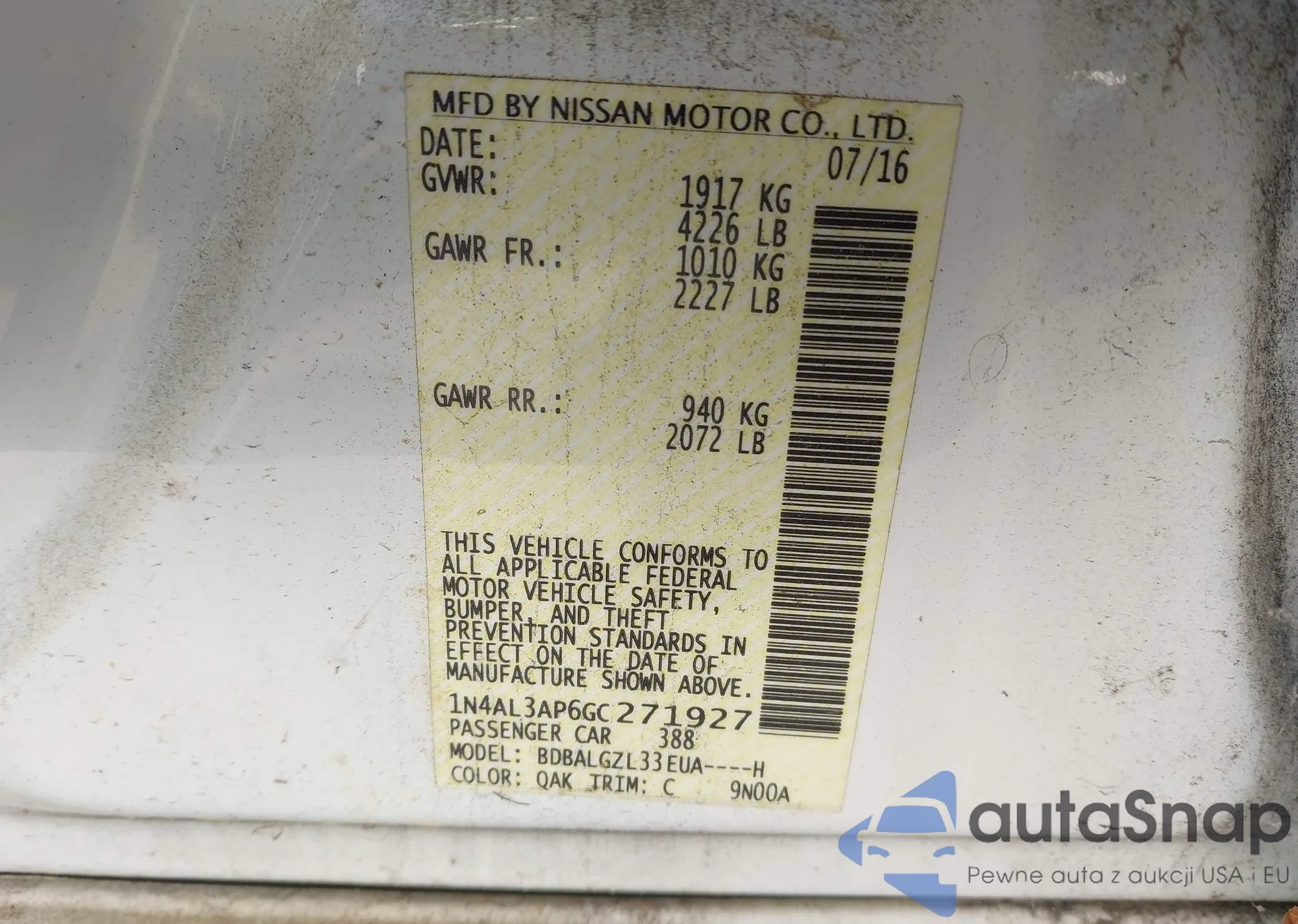 Nissan Altima 2016 – Historia pojazdu (sprzedany na IAAI)