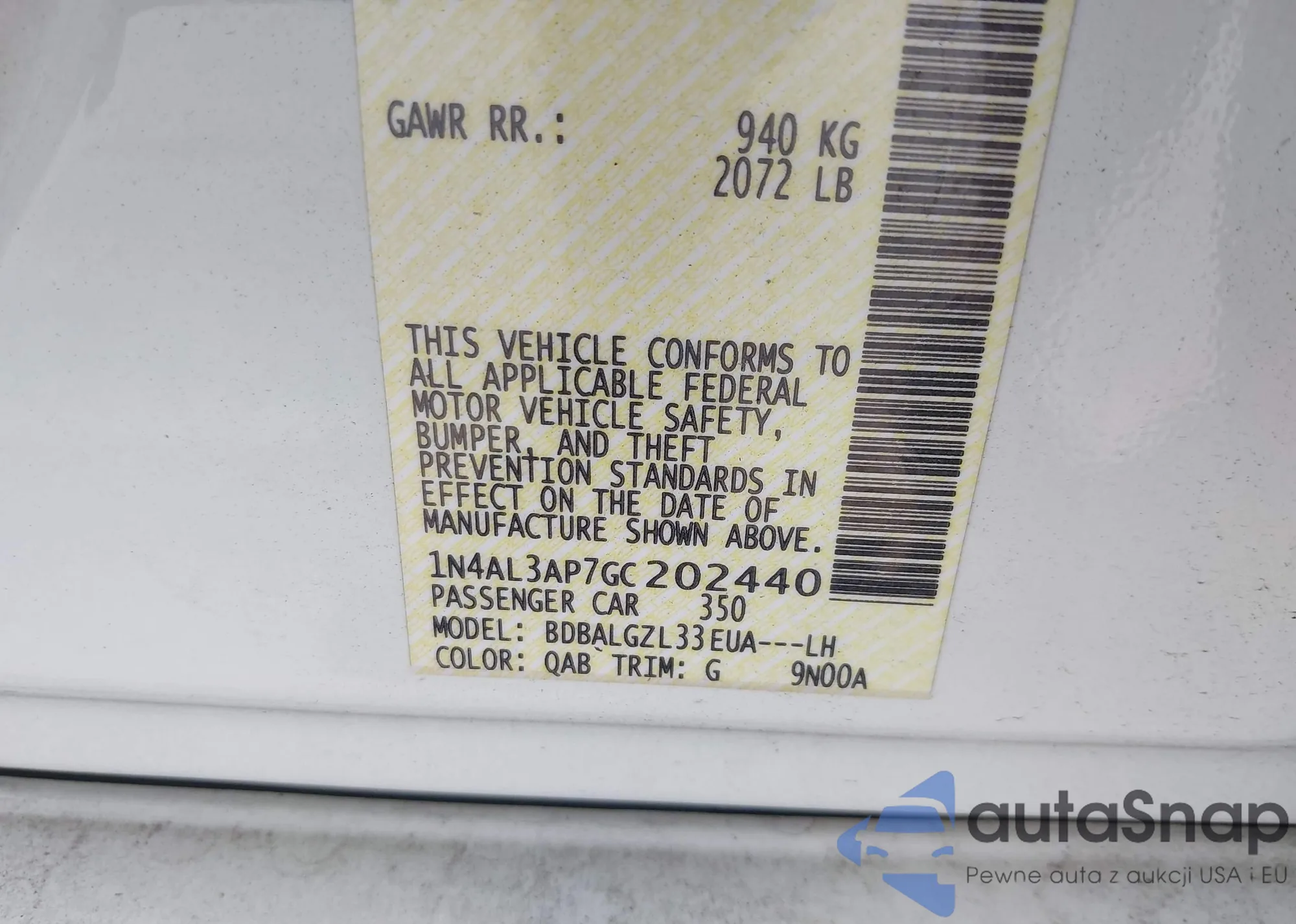 VIN: 1N4AL3AP7GC202440
