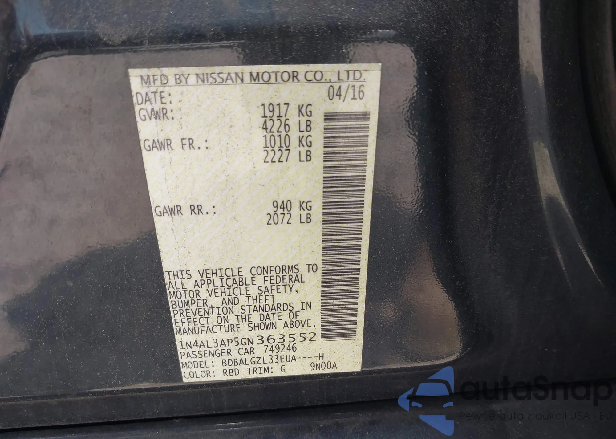 VIN: 1N4AL3AP5GN363552