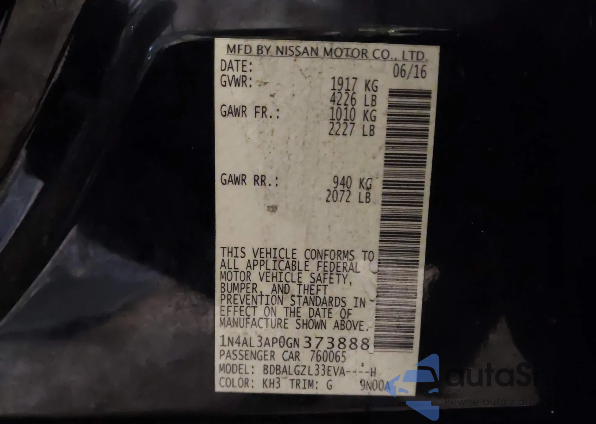 VIN: 1N4AL3AP0GN373888