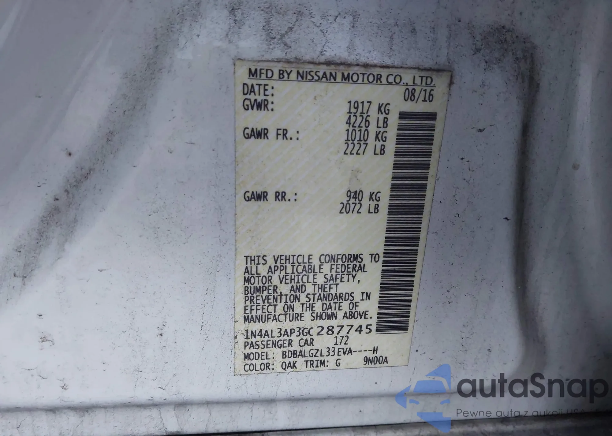 VIN: 1N4AL3AP3GC287745