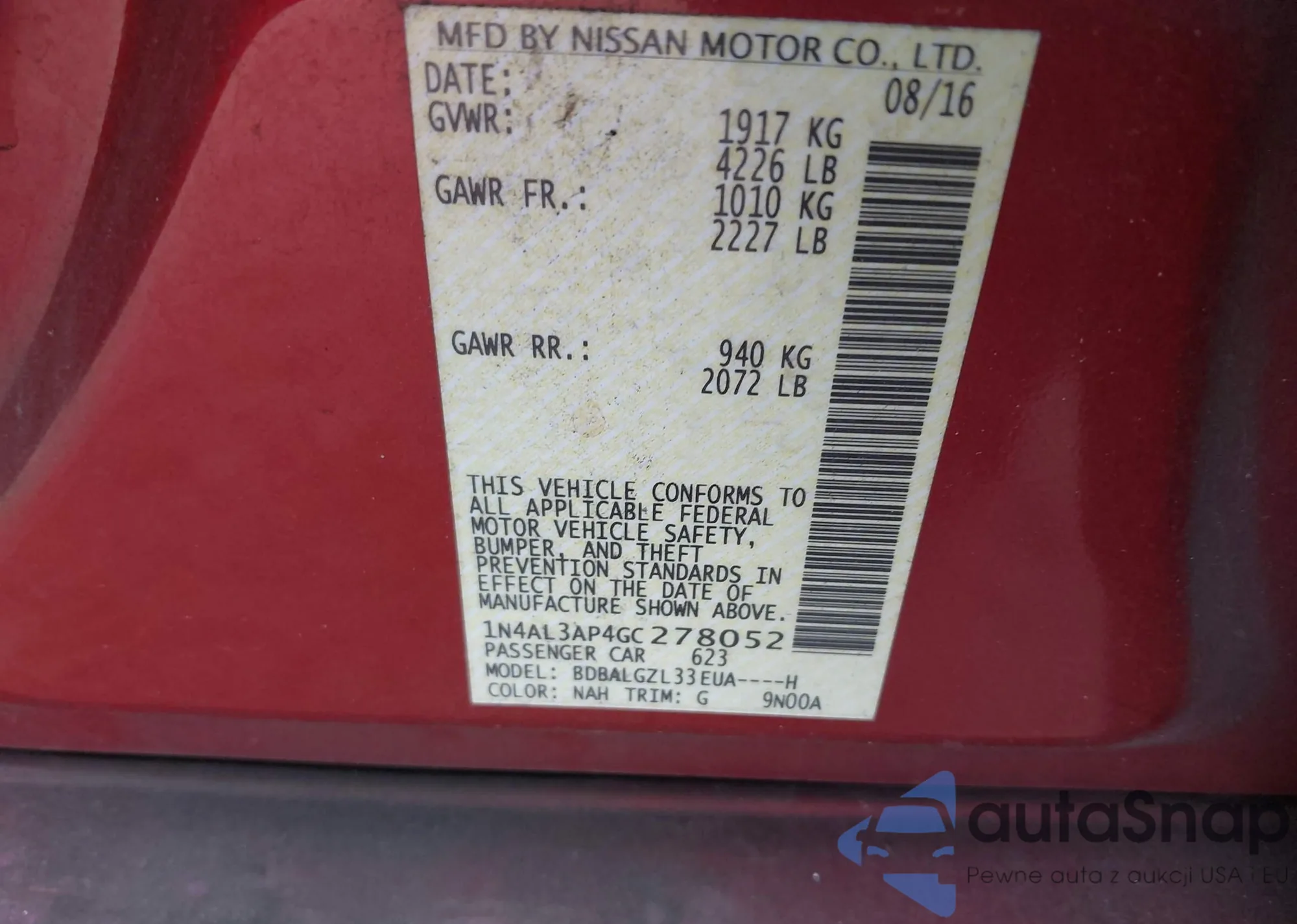 VIN: 1N4AL3AP4GC278052