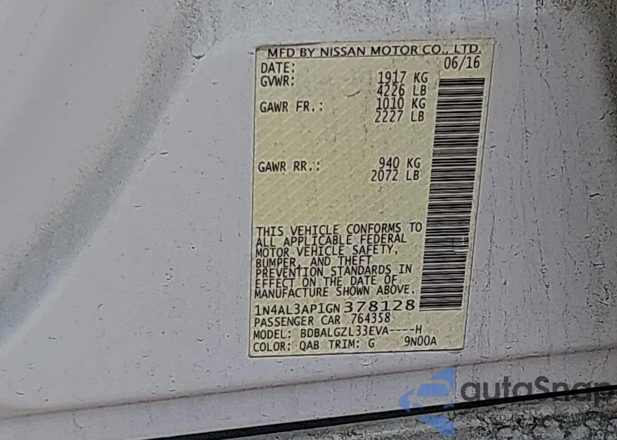 VIN: 1N4AL3AP1GN378128