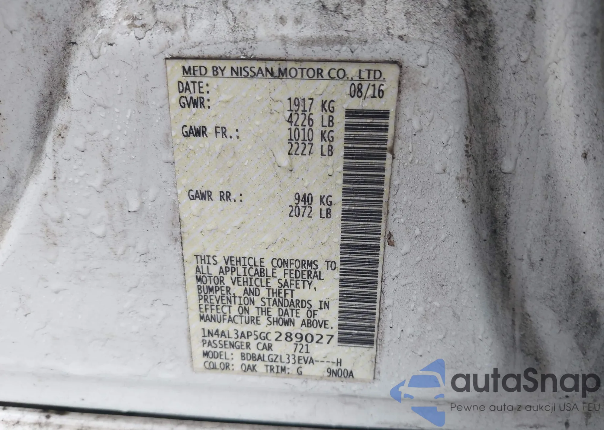 VIN: 1N4AL3AP5GC289027