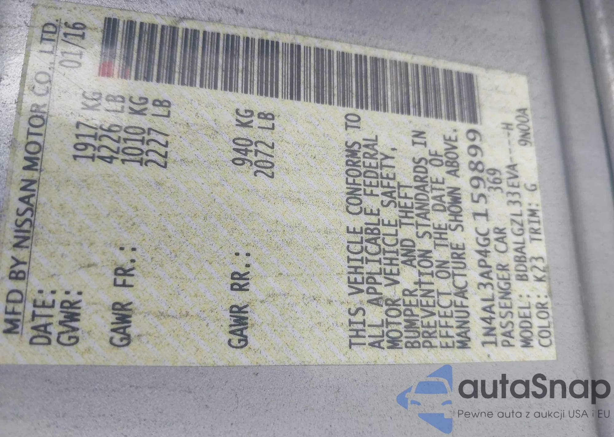 VIN: 1N4AL3AP4GC159899