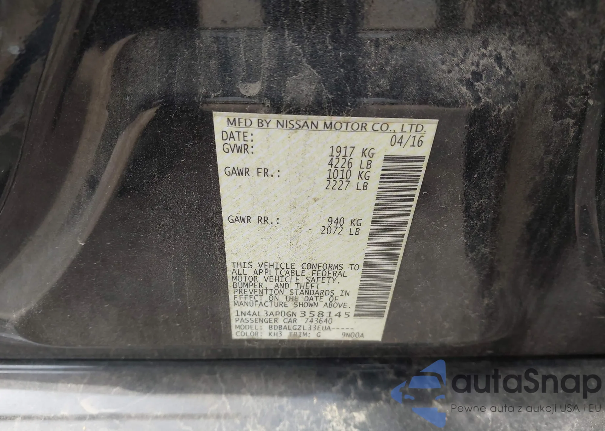 VIN: 1N4AL3AP0GN358145