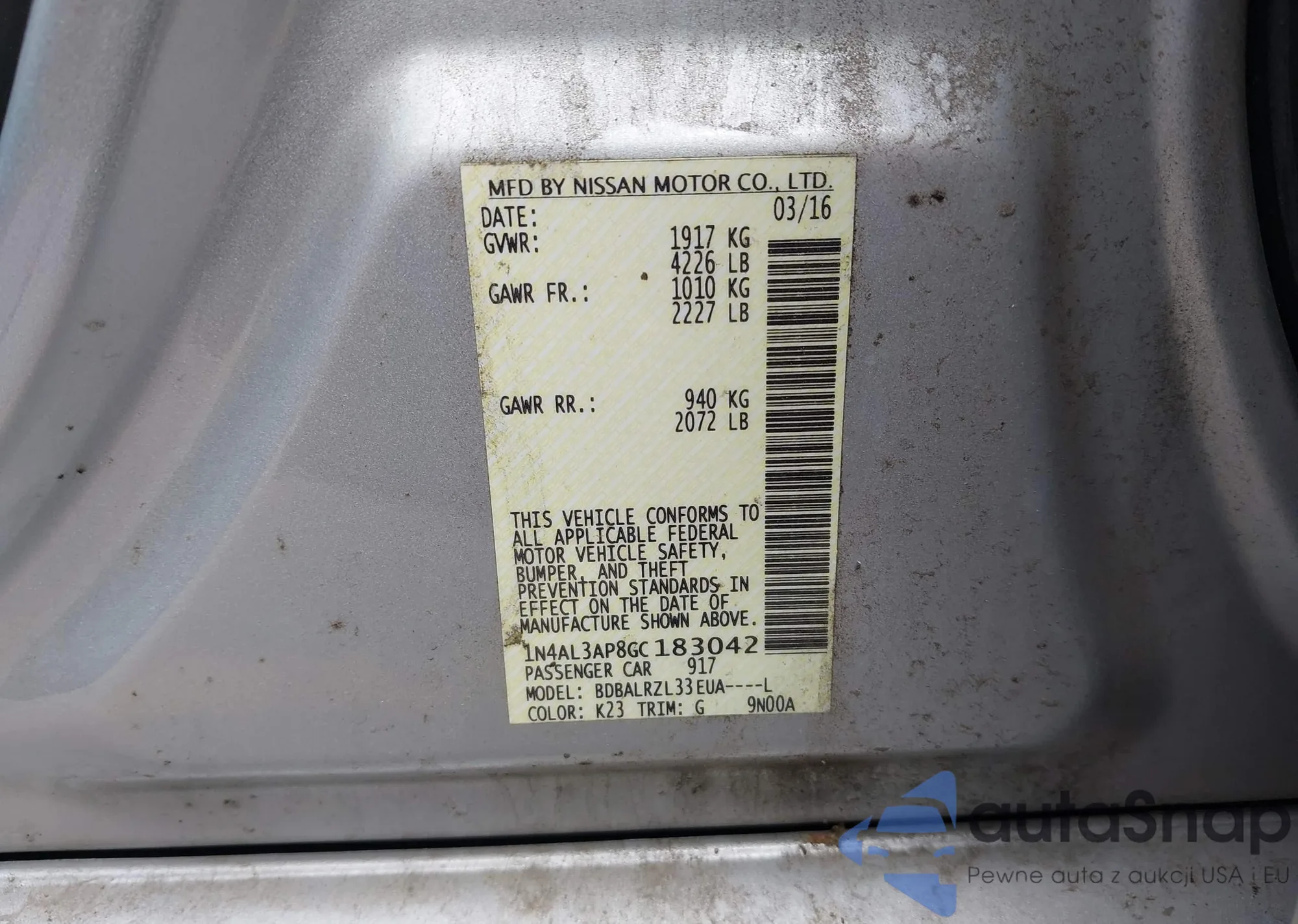 VIN: 1N4AL3AP8GC183042
