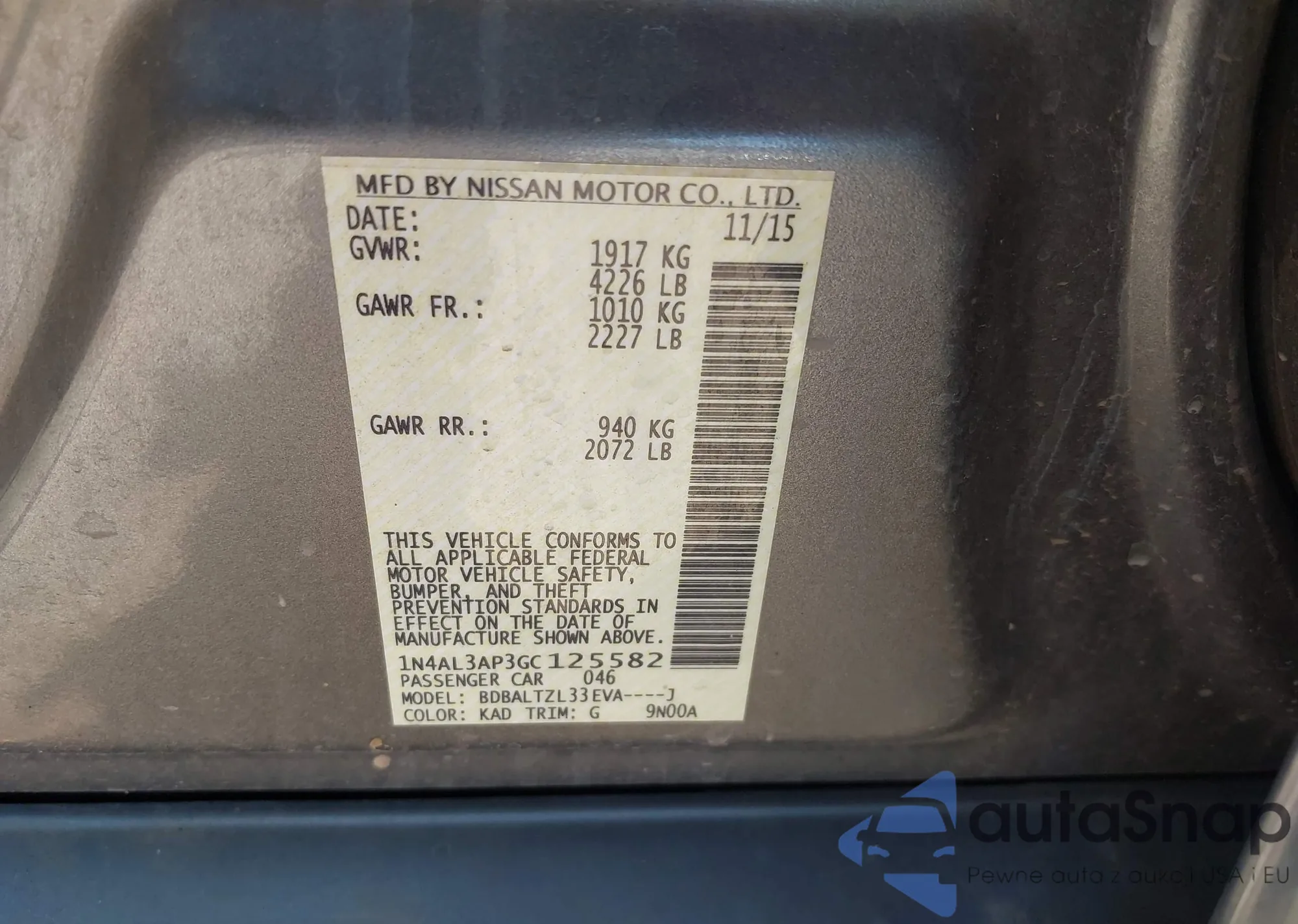 VIN: 1N4AL3AP3GC125582