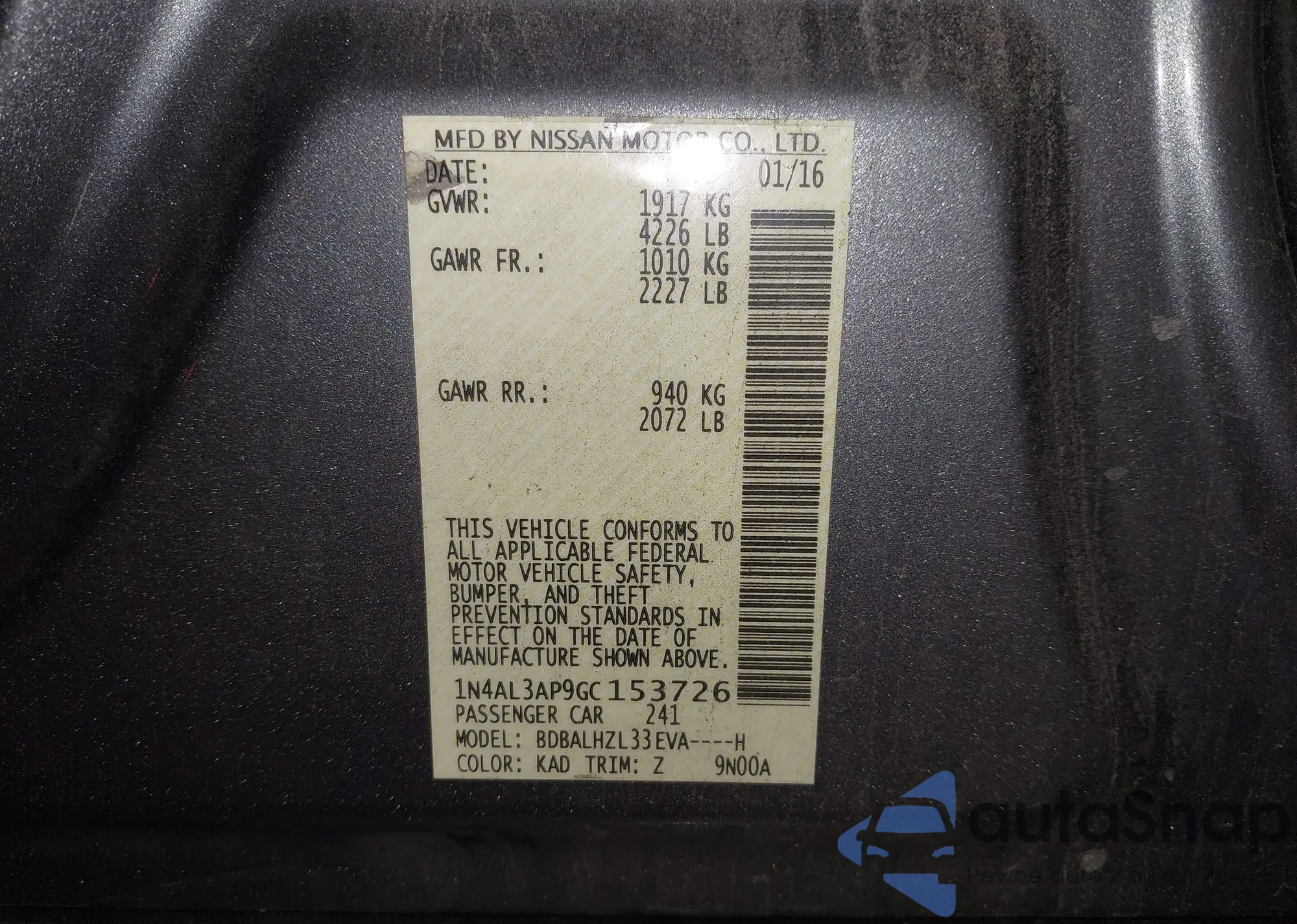 VIN: 1N4AL3AP9GC153726