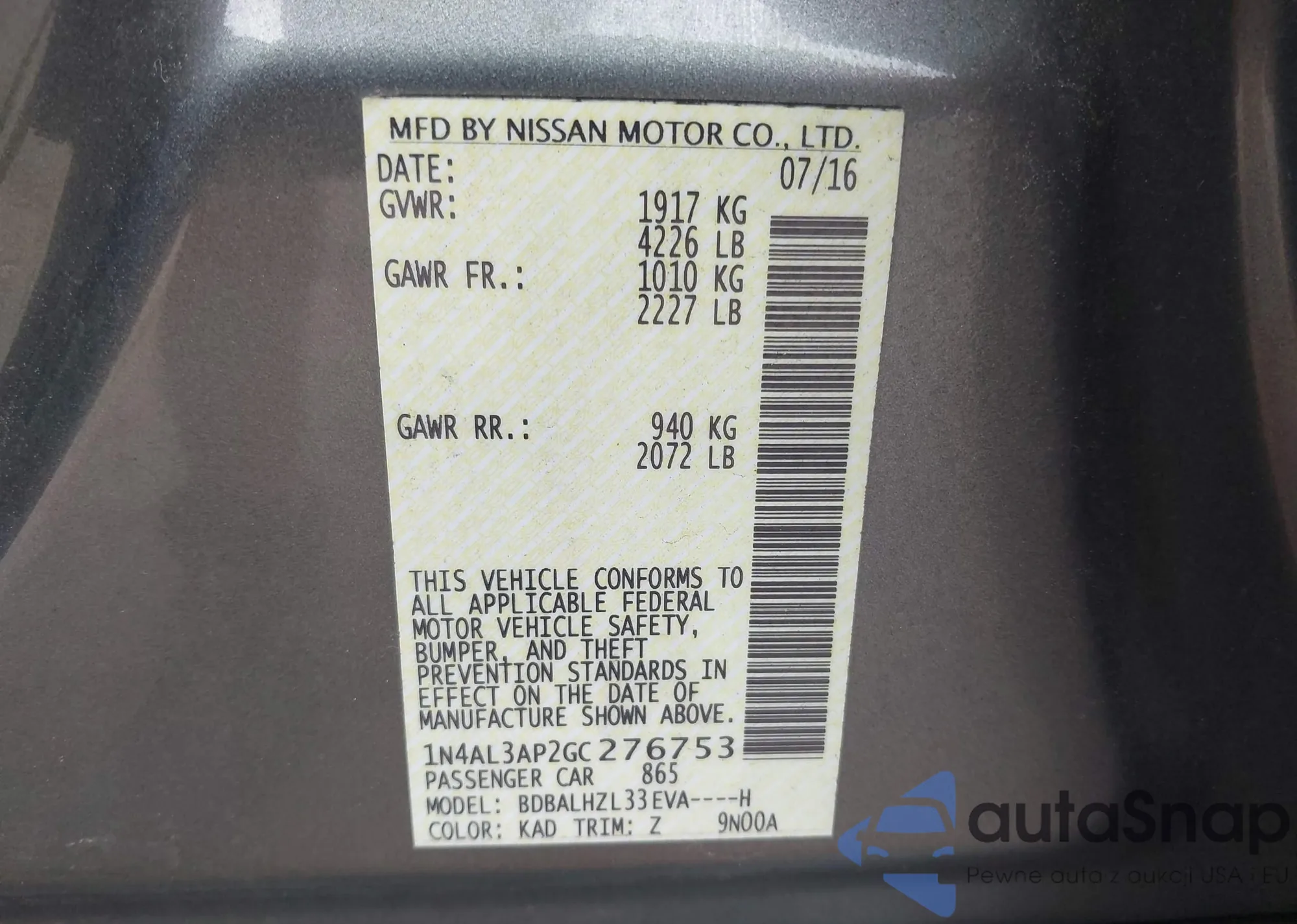 VIN: 1N4AL3AP2GC276753