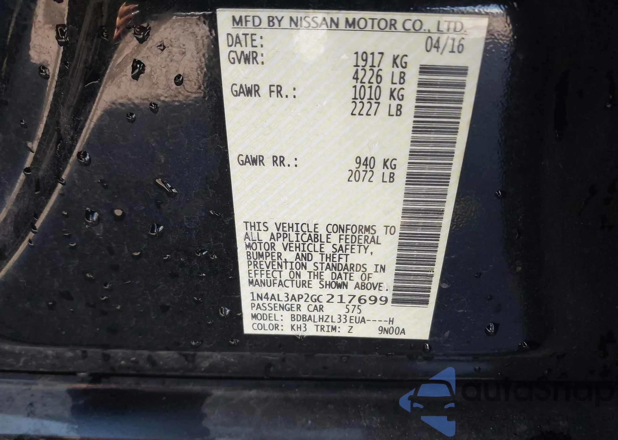 Samochód Nissan Altima 2016 (VIN 1N4AL3AP2GC217699) nie był wcześniej licytowany. Dokumenty są czyste, przebieg odpowiada lub jest niższy niż średnia rynku. Sprzedaje go firma ubezpieczeniowa – polecamy zakup. Dostawa do portu zajmie ok. 6–8 tygodni.
