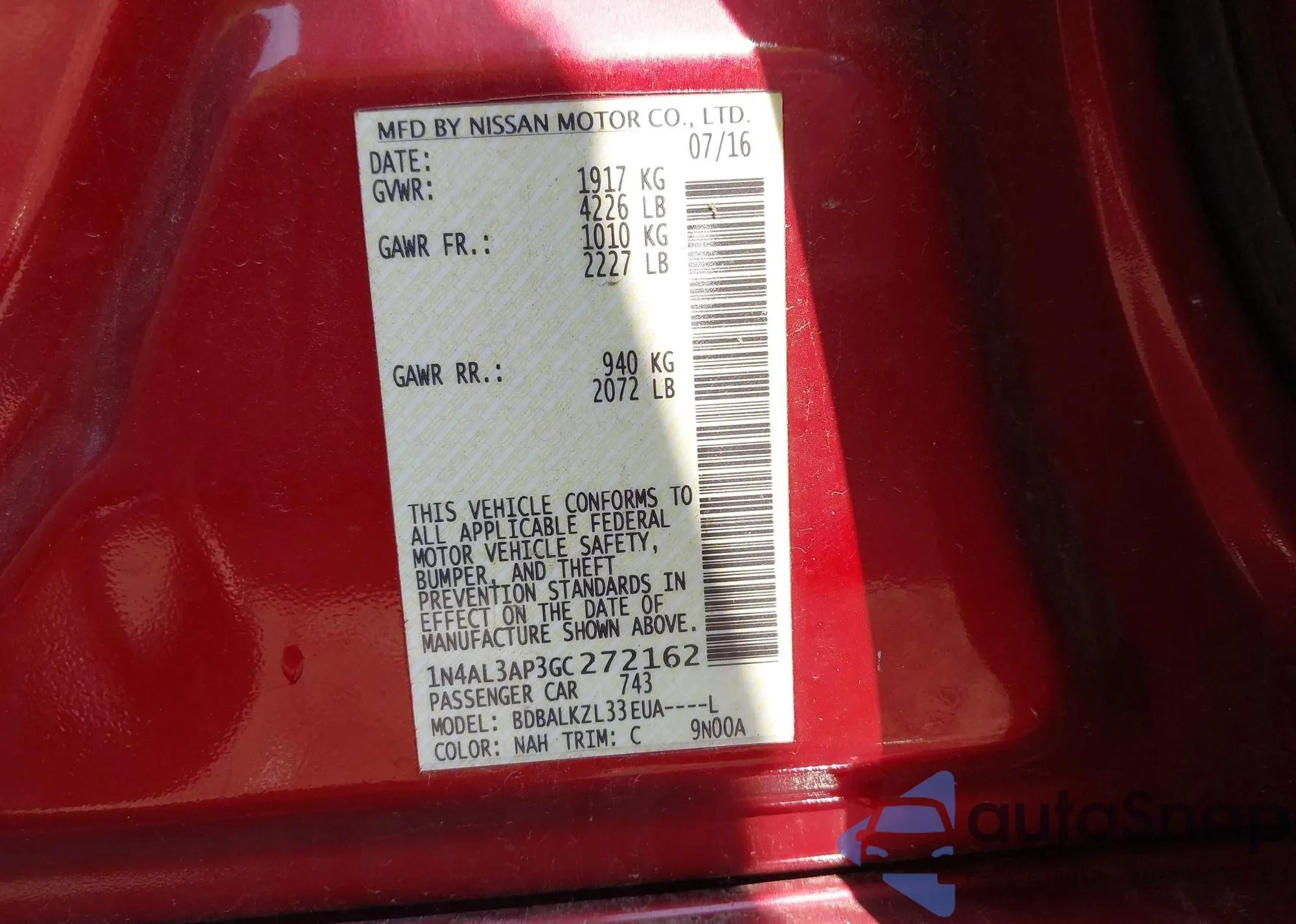 VIN: 1N4AL3AP3GC272162