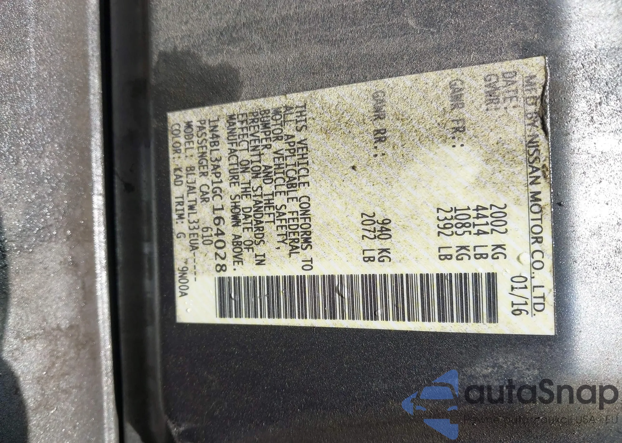 VIN: 1N4BL3AP1GC164028