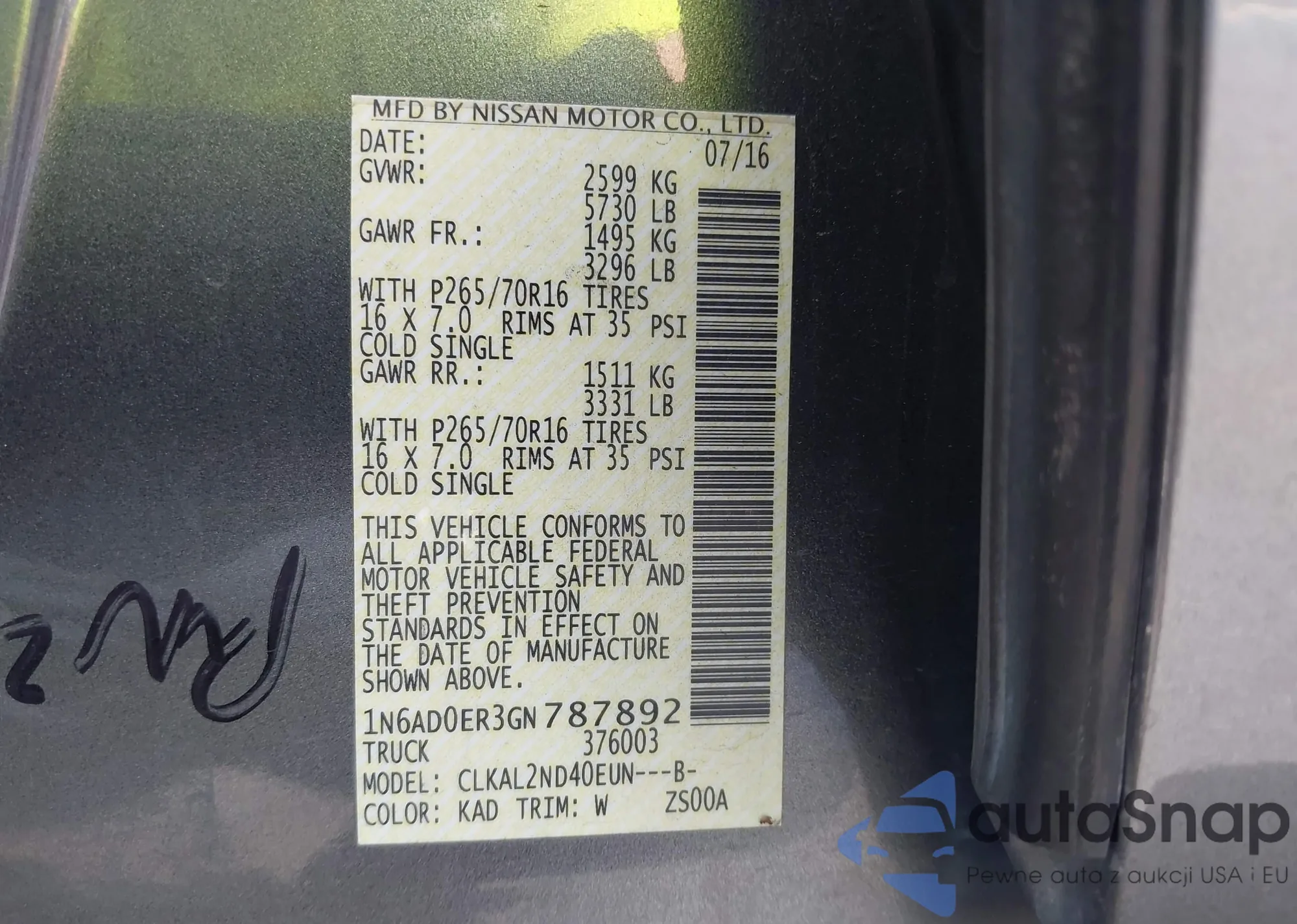 • VIN: 1N6AD0ER3GN787892