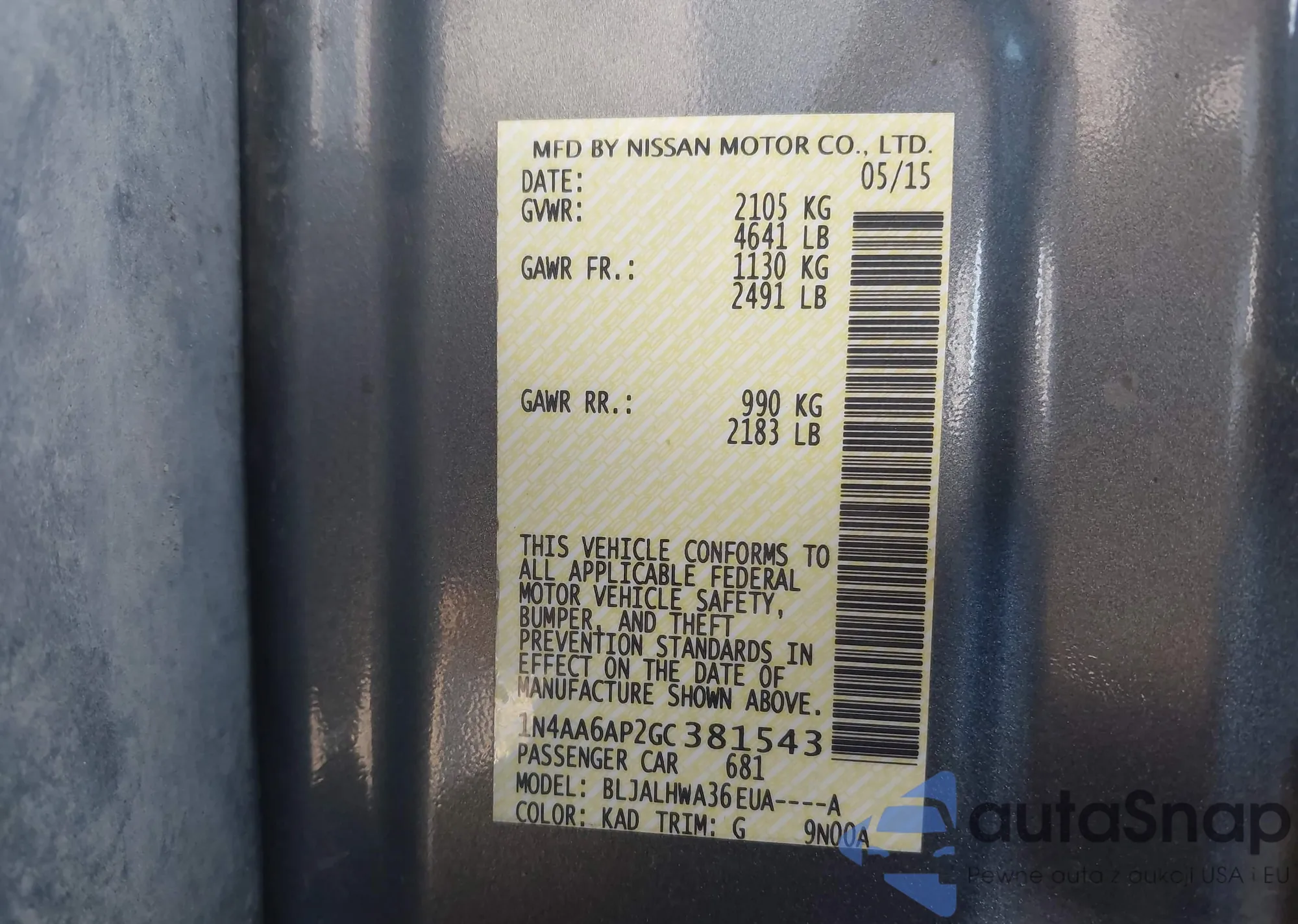 Samochód Nissan Maxima 2016 (VIN 1N4AA6AP2GC381543) nie był wcześniej licytowany. Dokumenty są czyste, przebieg odpowiada lub jest niższy niż średnia rynku. Sprzedaje go firma ubezpieczeniowa – polecamy zakup. Dostawa do portu zajmie ok. 6–8 tygodni.