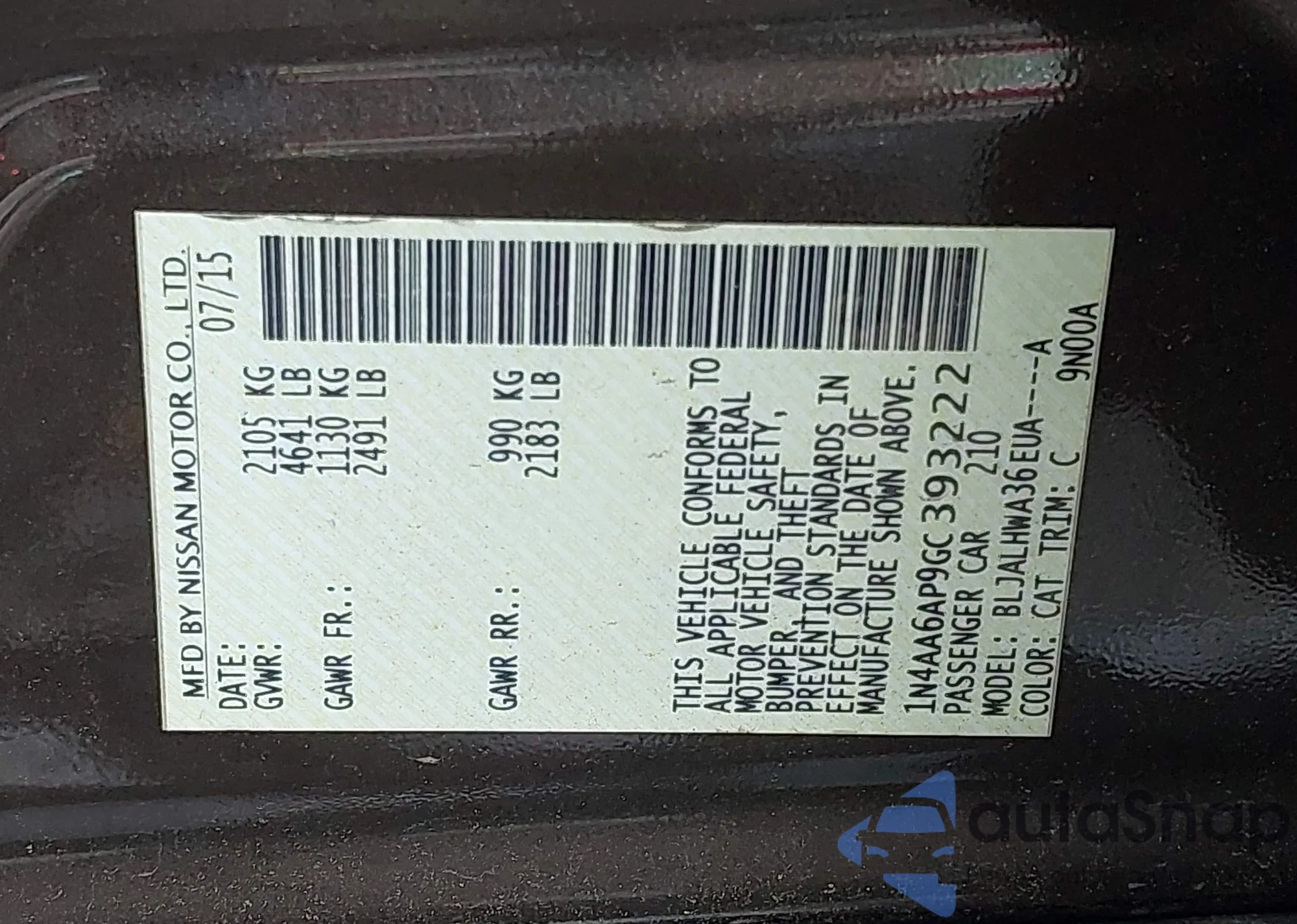 • VIN: 1N4AA6AP9GC393222