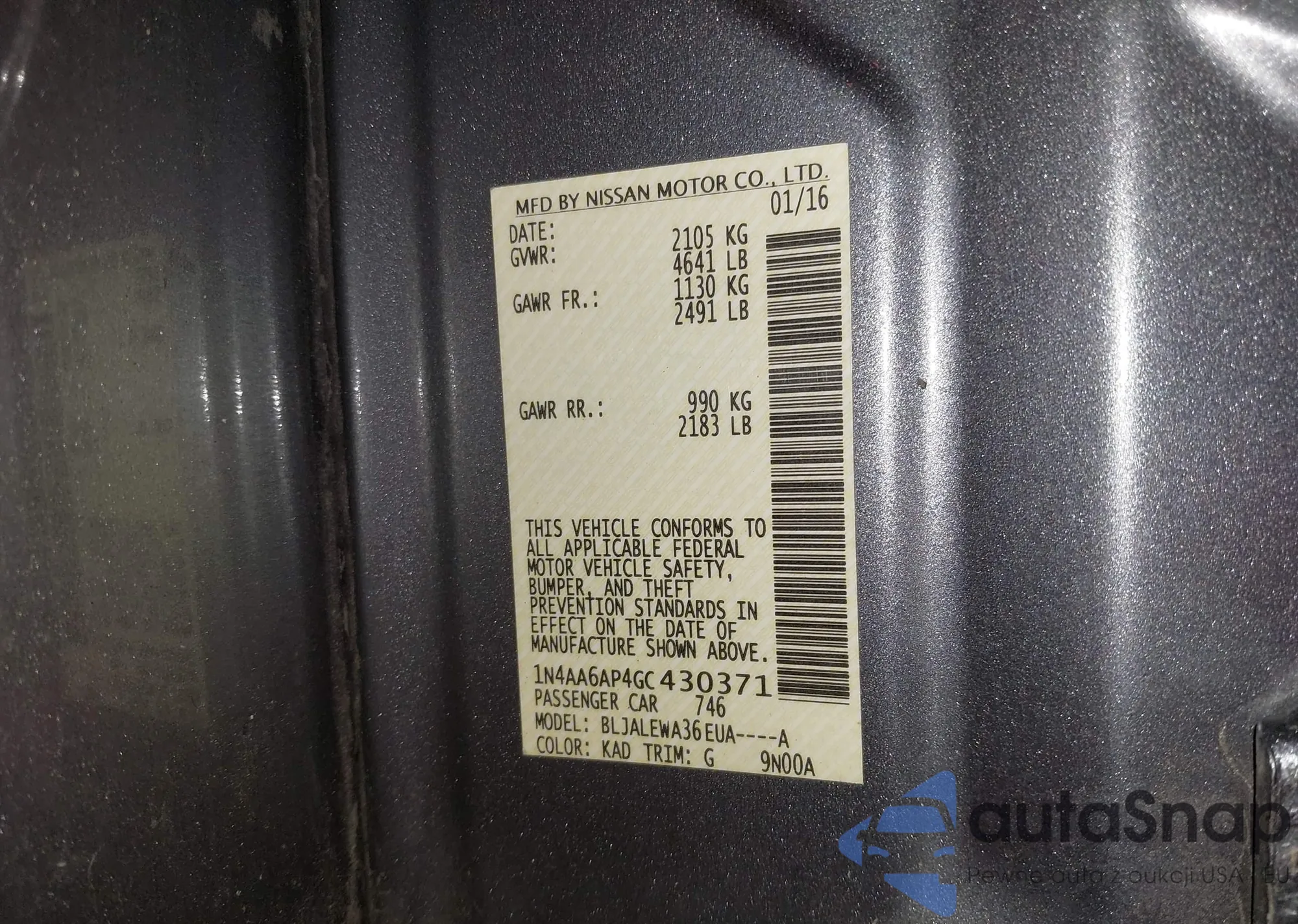 VIN: 1N4AA6AP4GC430371