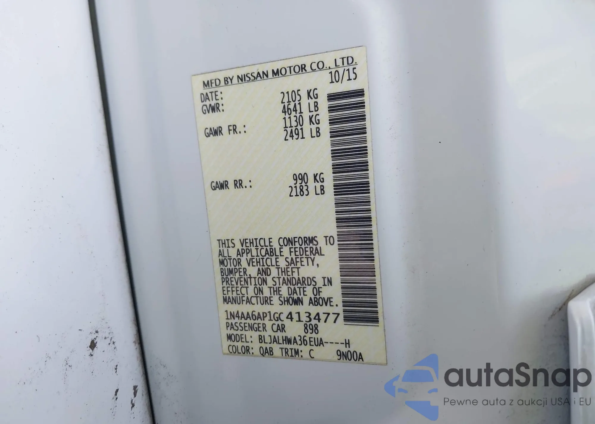 VIN: 1N4AA6AP1GC413477