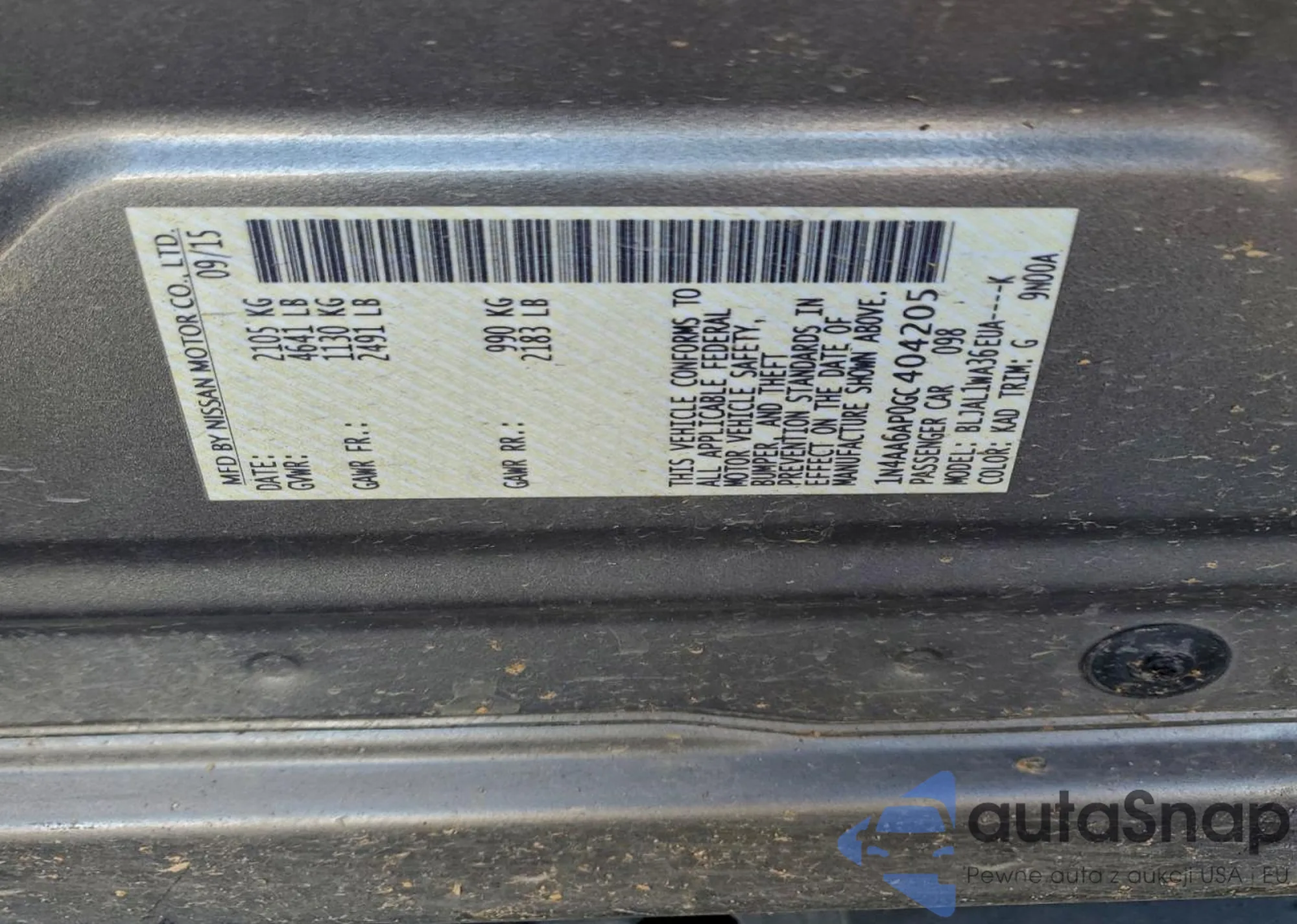 VIN: 1N4AA6AP0GC404205