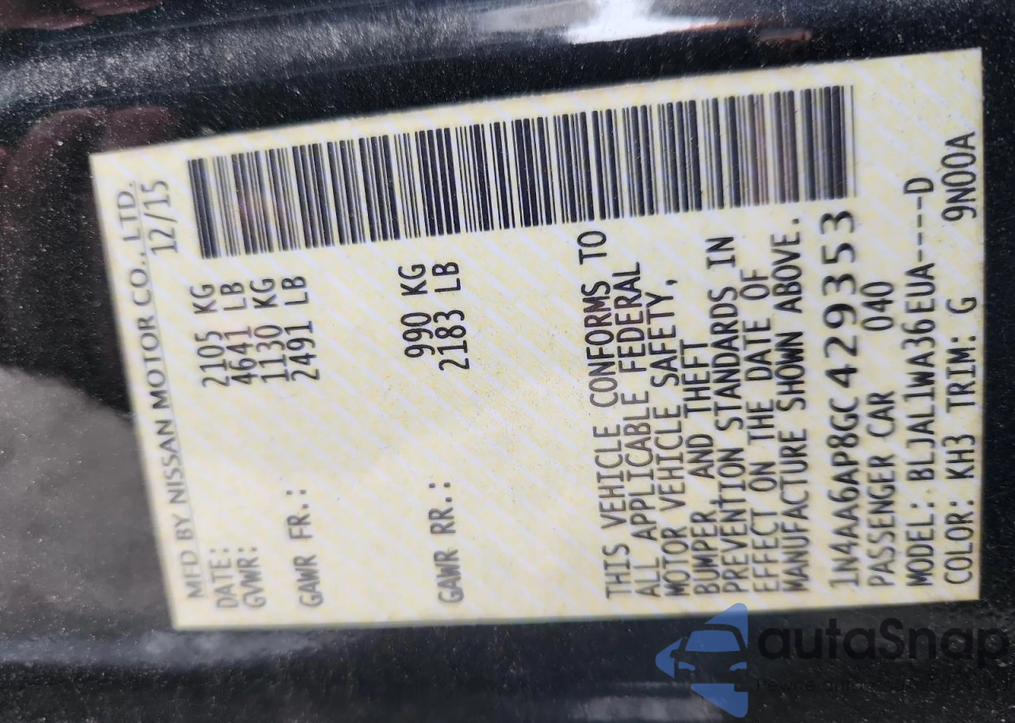 VIN: 1N4AA6AP8GC429353
