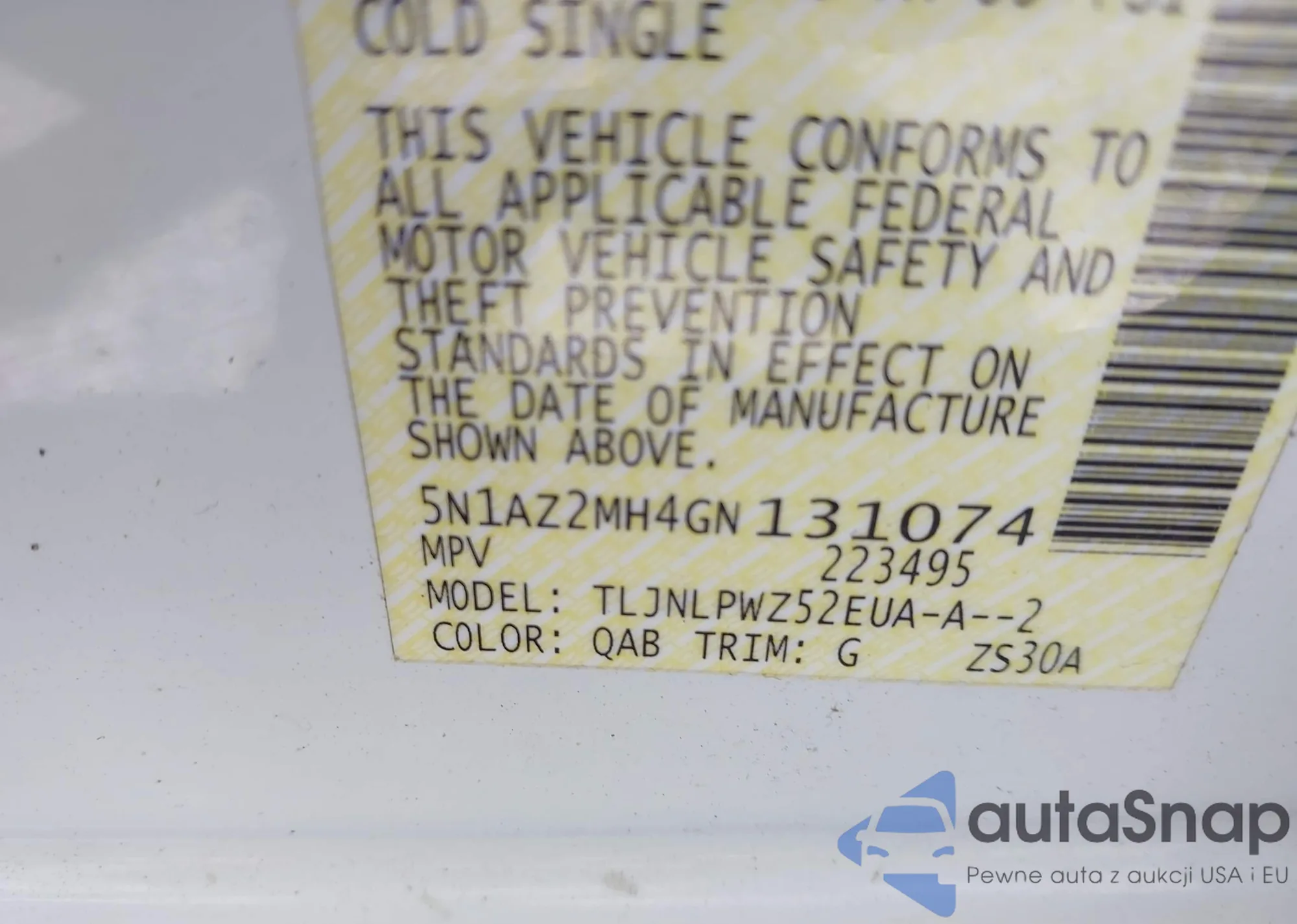VIN: 5N1AZ2MH4GN131074