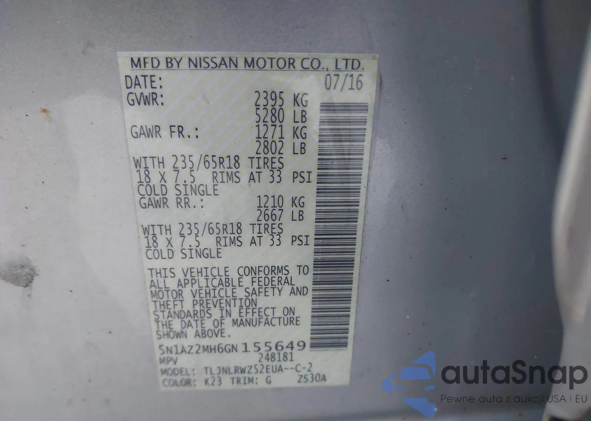 VIN: 5N1AZ2MH6GN155649