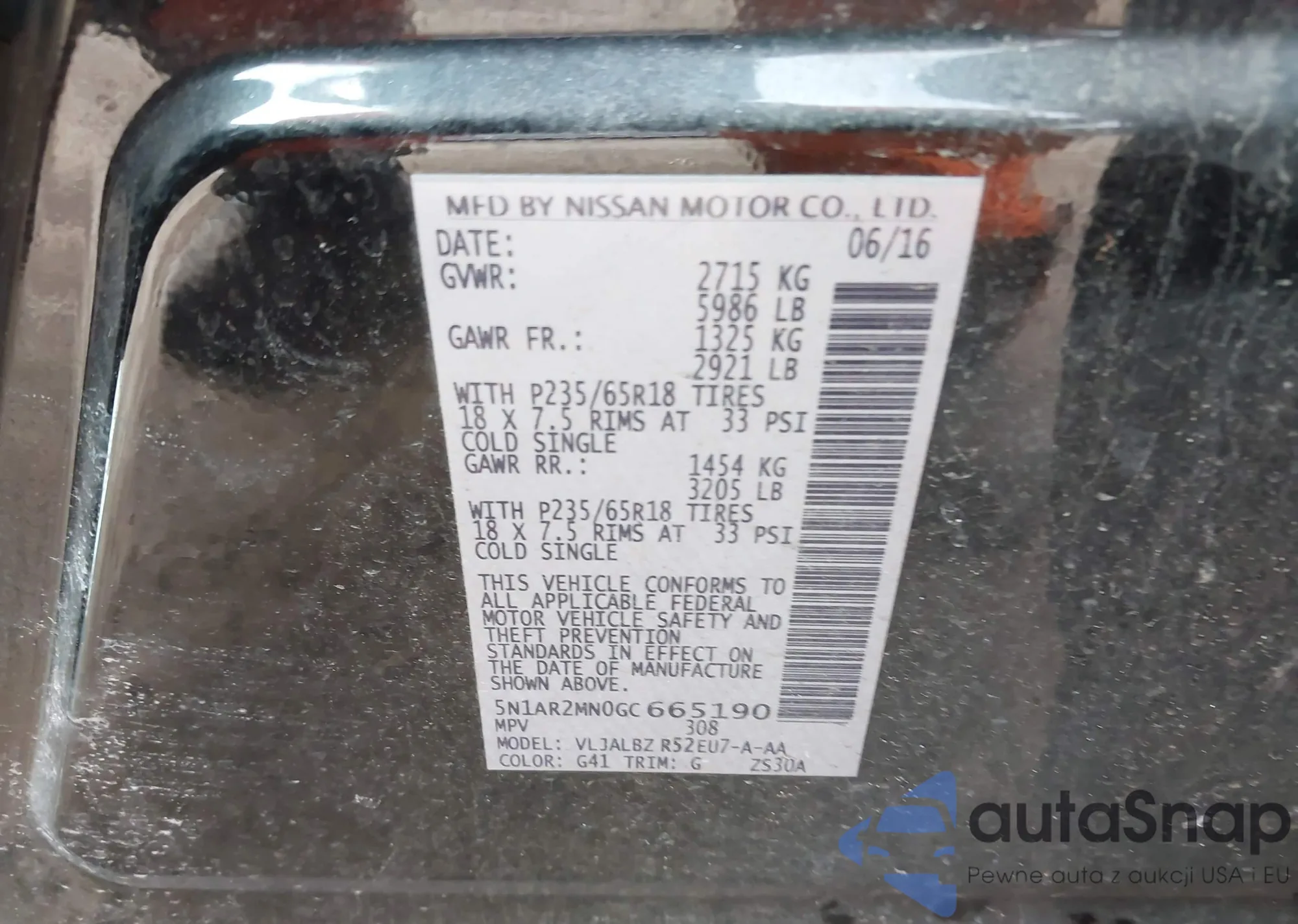 Samochód Nissan Pathfinder 2016 (VIN 5N1AR2MN0GC665190) nie był wcześniej licytowany. Dokumenty są czyste, przebieg odpowiada lub jest niższy niż średnia rynku. Sprzedaje go firma ubezpieczeniowa – polecamy zakup. Dostawa do portu zajmie ok. 6–8 tygodni.