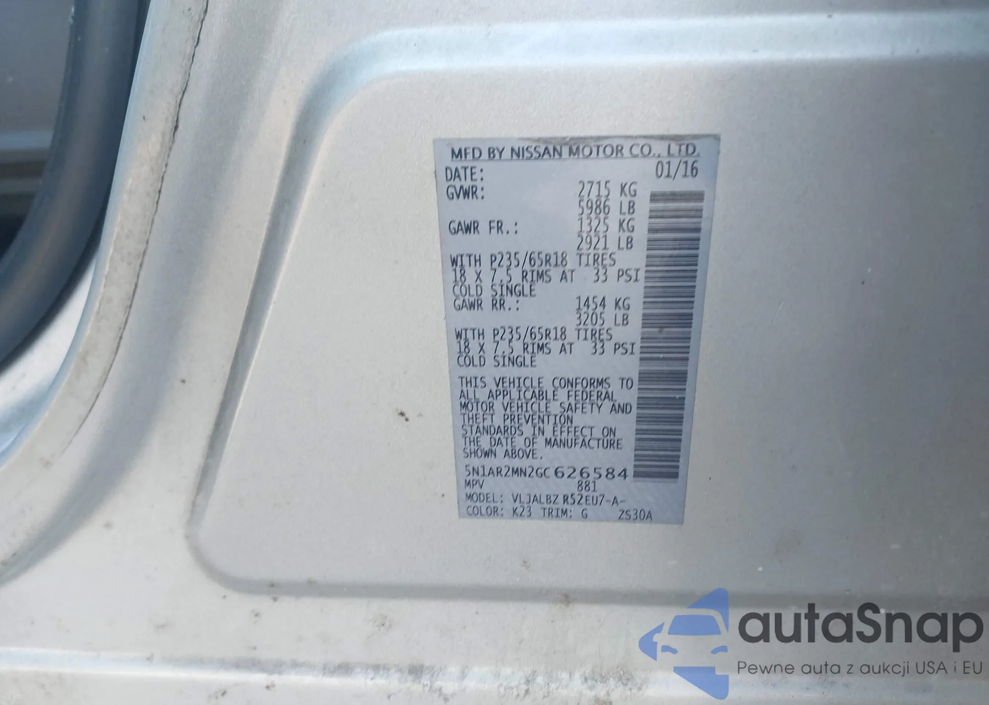 • VIN: 5N1AR2MN2GC626584